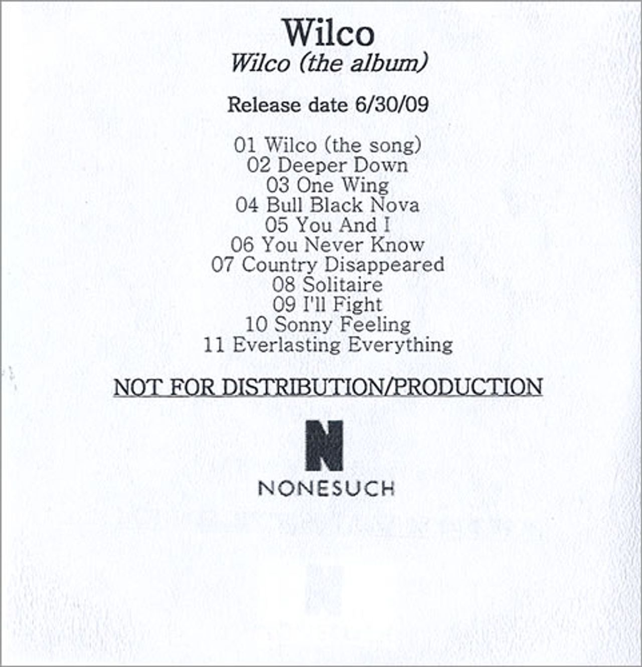 WILCO Wilco [The Album] (Official 2009 US Nonesuch 11-track