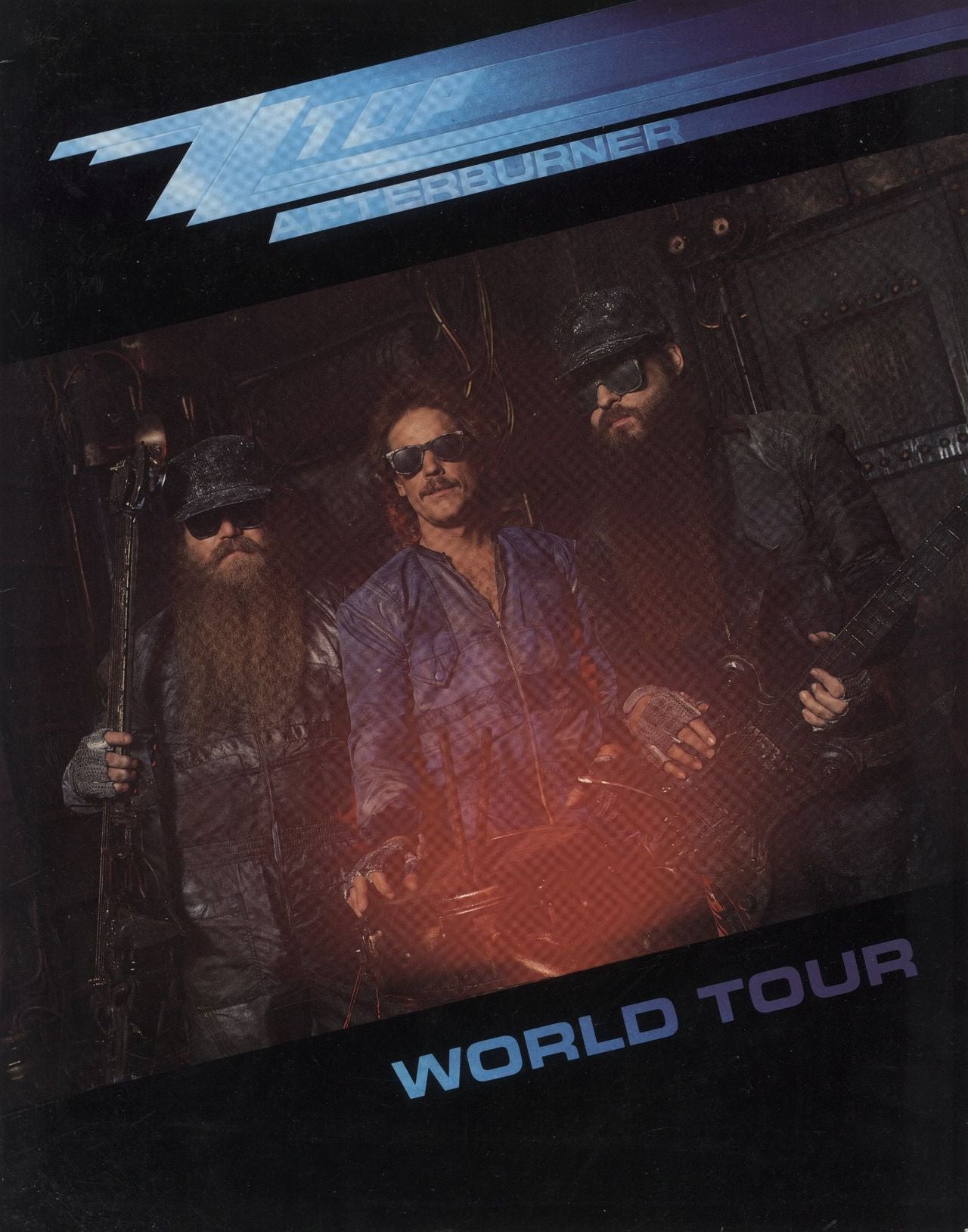 ZZ TOP Afterburner World Tour (Official 1985 UK 20-page tour programme featuring biography, discography & lots of colour photos with a superb glossy picture cover. The cover of this copy shows some slight signs of age but the contents are still in great condition, overall Excellent)