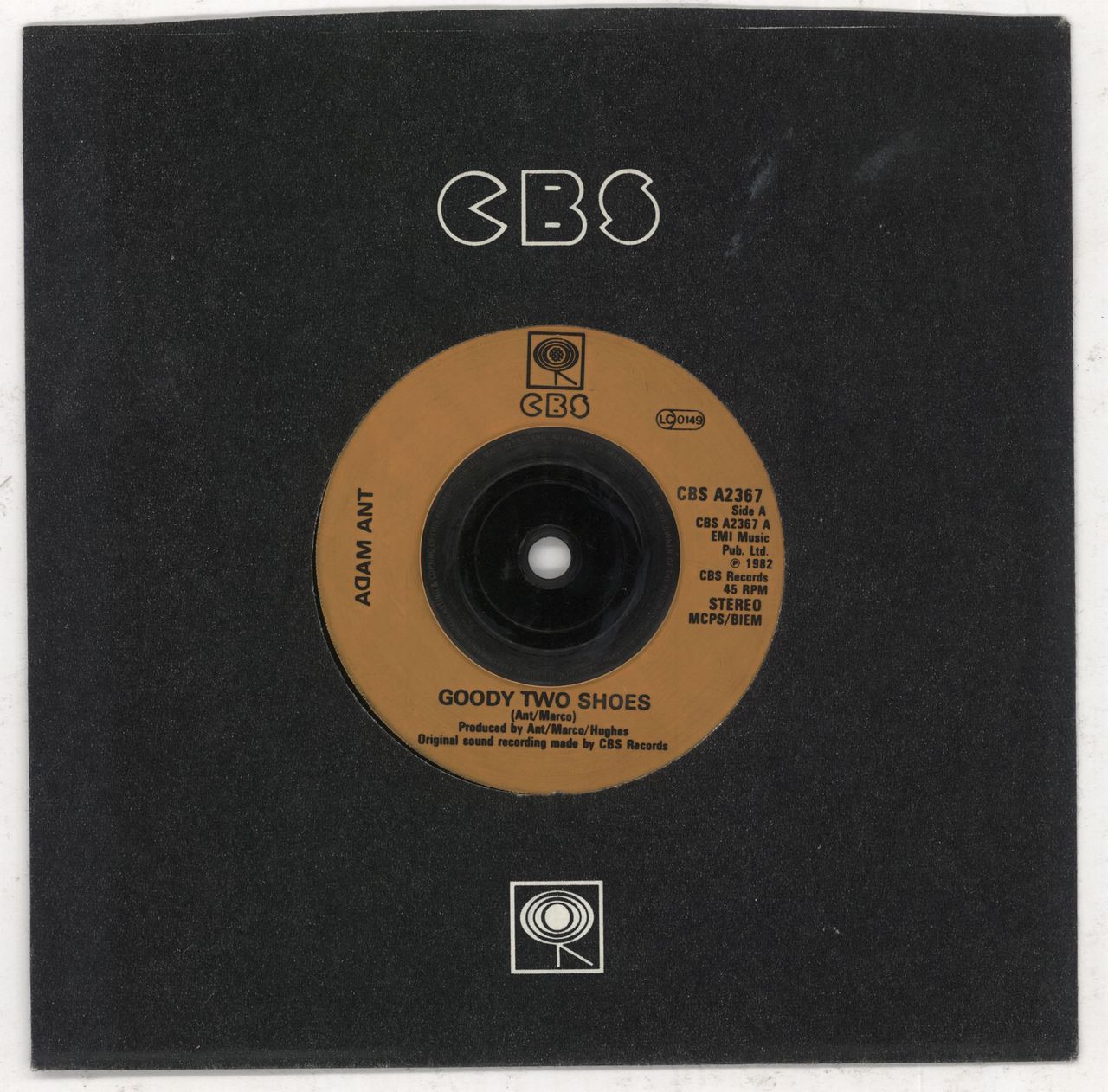 ADAM ANT Goody Two Shoes (1982 UK injection moulded 7" vinyl single, also including Red Scab, CBS company die-cut paper sleeve CBSA2367)