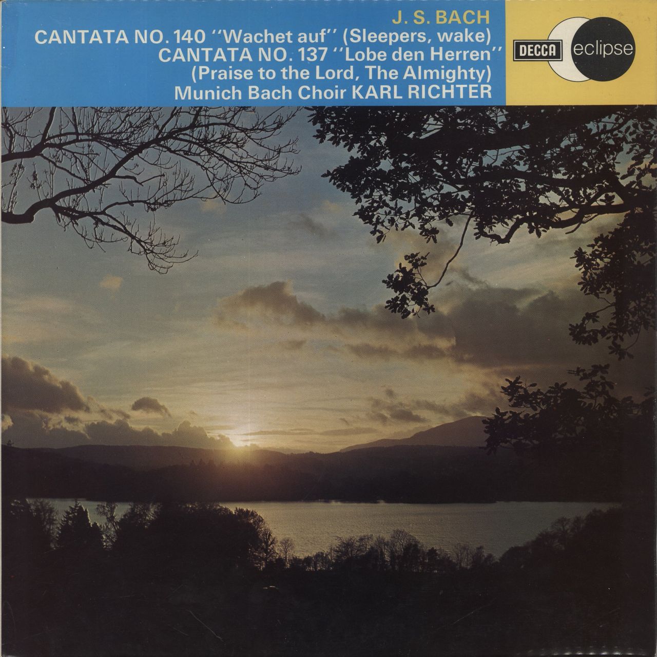 MUNICH BACH CHOIR conducted by KARL RICHTER Bach: Cantata No. 140 "Wachet Auf" / Cantata No. 137 "Lobe Den Herren" (1973 UK 13-track stereo vinyl LP, front laminated picture sleeve. The sleeve shows minimal wear and the vinyl appears barely played ECSR729)