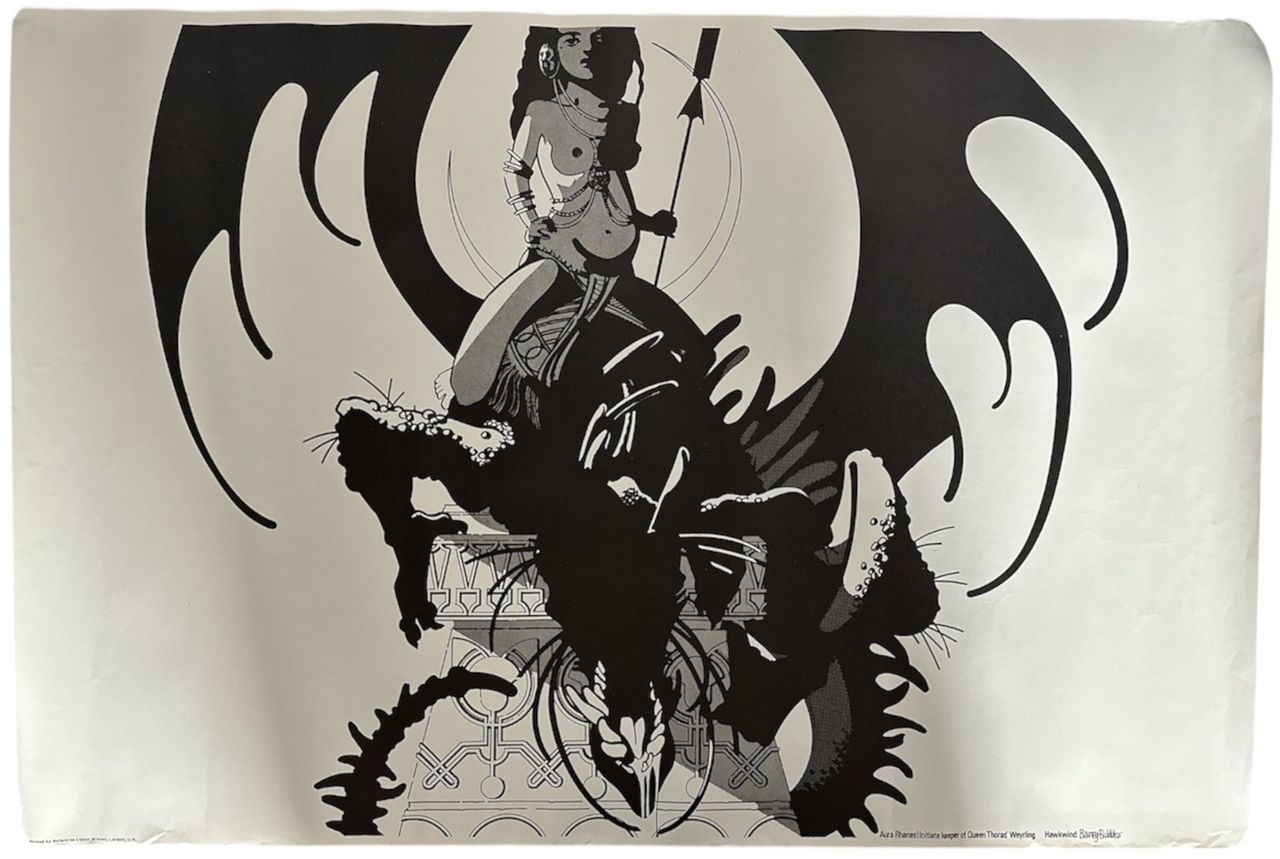 BARNEY BUBBLES Hawkwind Posters (Incredible complete set of five 1972 UK 20" x 30" posters that were either available directly from the legendary British artist/graphic designer himself [Hawkwind, Stiff Records etc] or at Hawkwind gigs & werenever made available for general retail sale. The posters remains in fantastic condition, with just a little creasing at the edges where they have been stored rolled. There is a small amount of historic oil staining by the use of poster puttyin the corners to mount the poster at some point, but, as a consequence, they remain free from pin holes, rips or tears. These amazing posters were loosely based on the characters of members of Hawkwind. Now, increasingly hard to find, especially in such great vintage condition. One of the few pieces of artwork designed by the late great artist & designer to actually have his name on them. Please see more info...