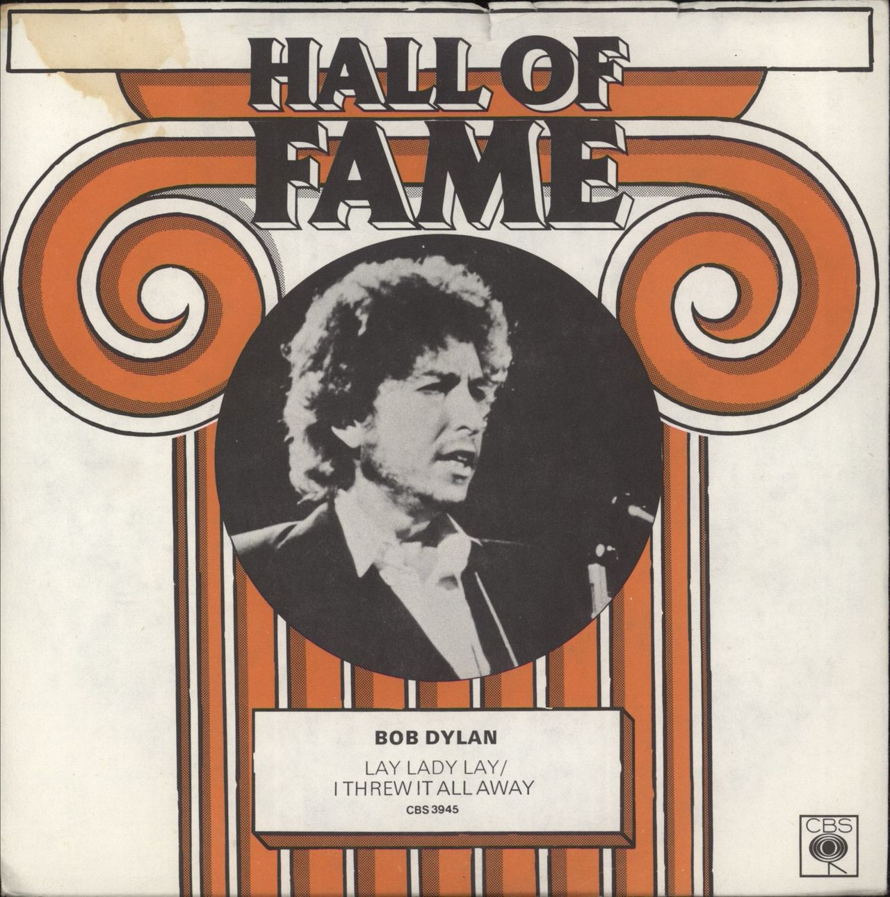 BOB DYLAN Lay Lady Lay (1976 UK Hall Of Fame series issue of the 1969 7" single with solid centre, also featuring I Threw It All Away, series picture sleeve. The thin sleeve displays some minor wear to the edges and along the opening edge, whilstthe vinyl shows only light signs of play SCBS3945)