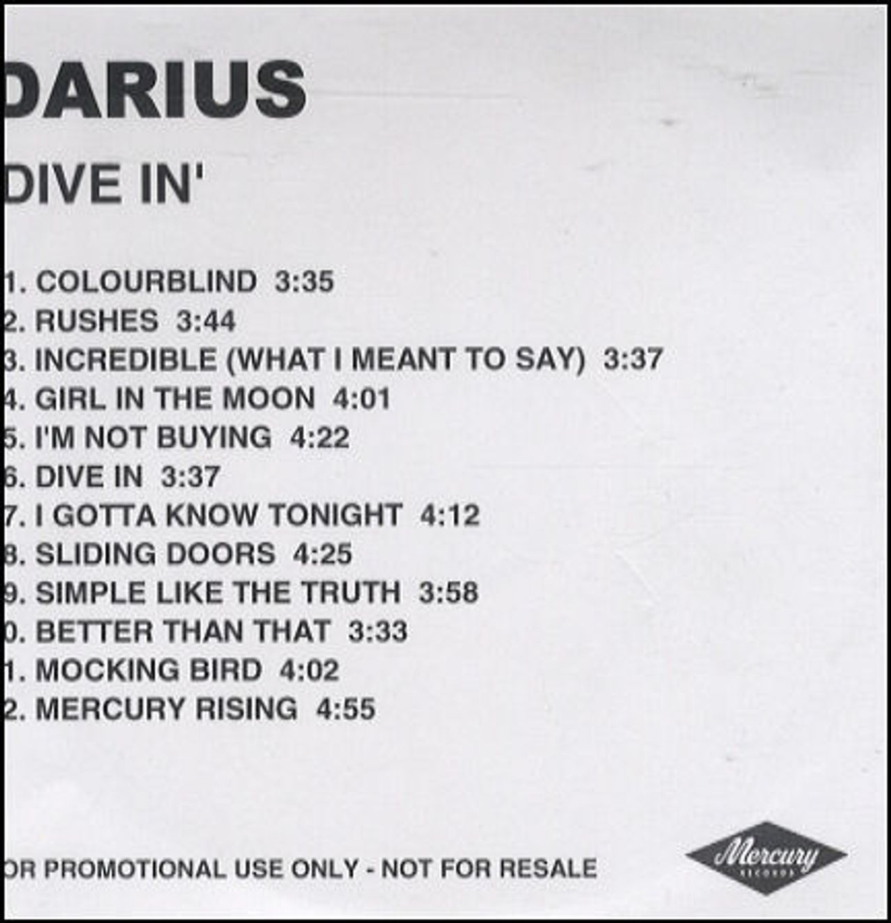 DARIUS Dive In (2002 UK 12-track Mercury promo CD-R acetate,