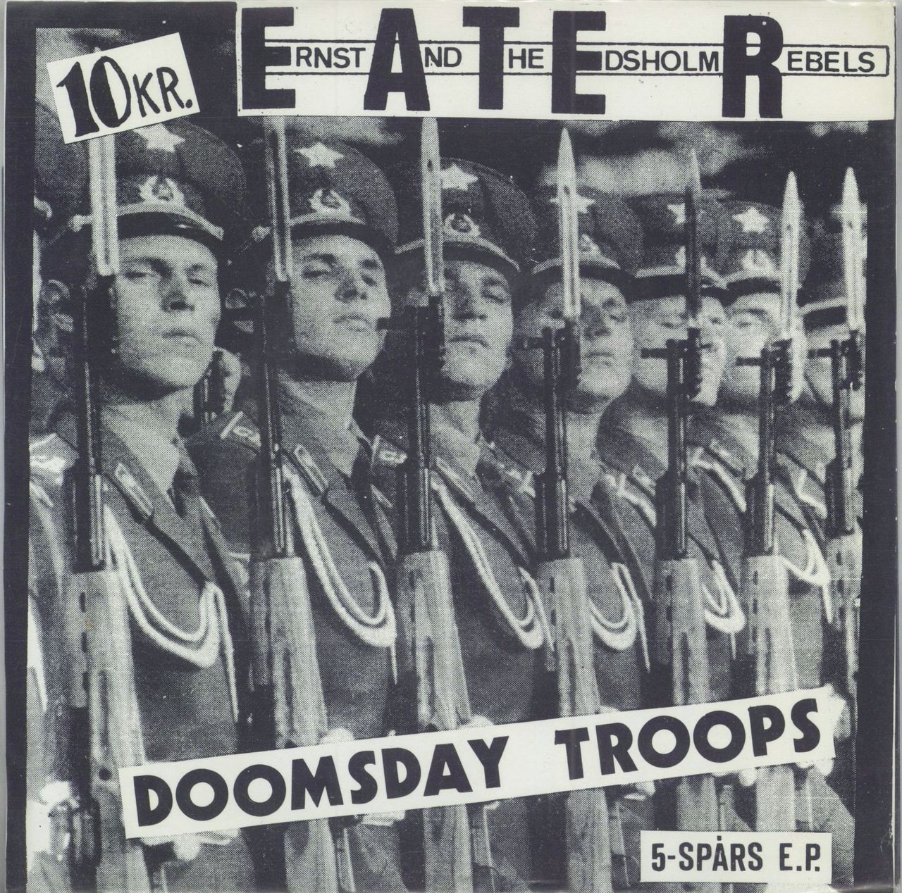 ERNST & THE EDSHOLM REBELS Doomsday Troops - 5-Spårs EP (Rare KBD Hardcore Punk 1984 Swedish-only 5-track 7" EP by the Swedish band E.A.T.E.R. [not to be confused with the British punk group], housed in a unique wraparound picture sleeve complete with the 8-page picture booklet. Limited to 1000 copies, the delicate cover is clean & in Excellent condition with the odd faint crease from ring wear. The vinyl is clean & grades VG+ with some faint paper hairline scuffs not affecting play ERNST001)