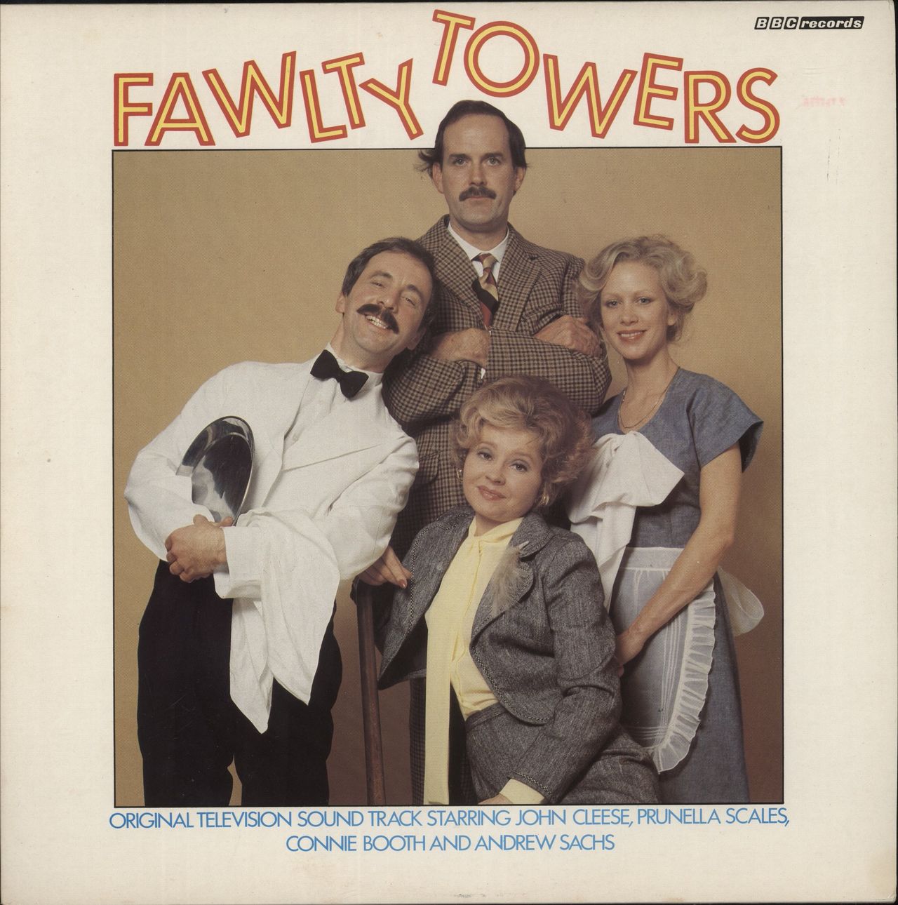 FAWLTY TOWERS Fawlty Towers (1979 UK BBC mono vinyl LP soundtrack, starring John Cleese, Prunella Scales, Connie Booth and Andrew Sachs. Features the episodes 'Mrs Richards', first broadcast on BBC TV 1979, and the classic 'Hotel Inspectors',first broadcast in 1975, picture sleeve. The sleeve shows just a little light shelfwear & the vinyl is in excellent condition with little sign of play REB377)