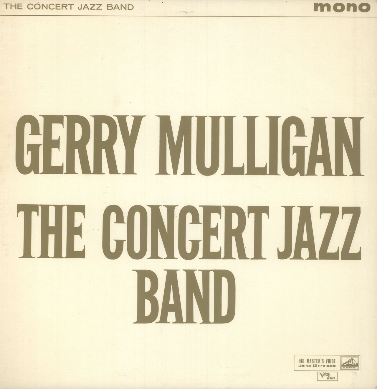 GERRY MULLIGAN The Concert Jazz Band (1960 UK 8-track mono vinyl LP, featuring unspecified live recordings from July, 1960 & May, 1960 on the semi-circular colour 'Nipper' label, front laminated flipback picture sleeve with Alun Morgan's albumnotes on the back. The sleeve shows light wear & the vinyl shows only light signs of play CLP1432)