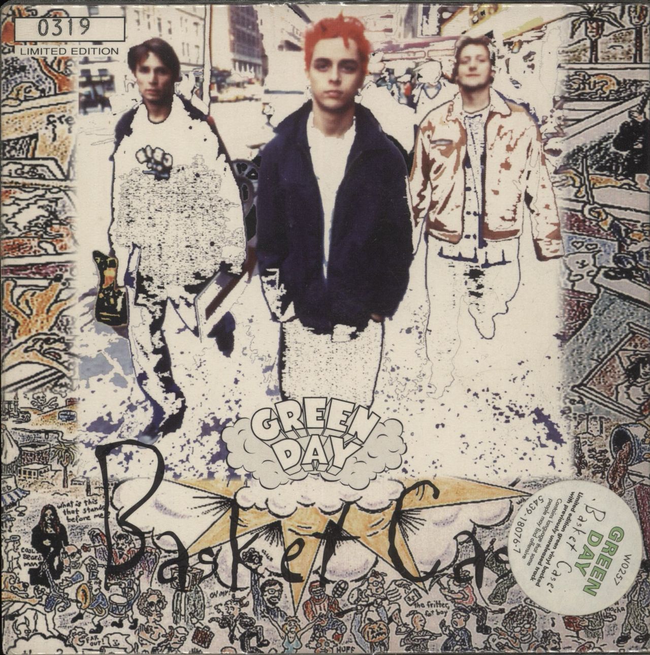 GREEN DAY Basket Case (1994 UK limited edition 2-track 7'' single pressed on LIME GREEN vinyl, also includes the previously unreleased cover version of The Kinks' Tired Of Waiting For You. Housed in a numbered wrap-around picture sleeve in an outer PVC sleeve with hype-sticker. There is a small split on the bottom edge of the PVC but the picture sleeve displays little sign of wear. The vinyl is in Near Mint condition. An essential pop punk anthem W0257)