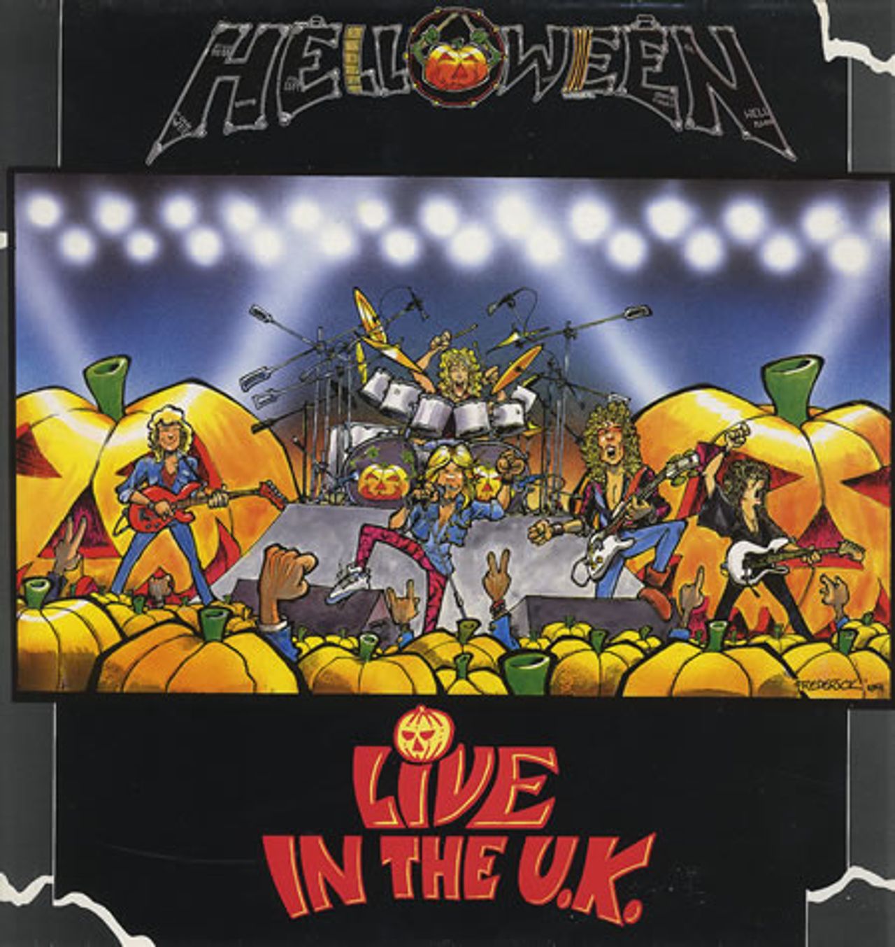 HELLOWEEN Live In The U.K. (1989 UK 7-track LP, recorded live on the 'Pumpkin Fly Free Tour' in November 1988, glossy 'live cartoon' picture sleeve with UK tour dates on the reverse. The sleeve & vinyl remain in Excellent condition with just afew faint signs of wear or play EMC3558)