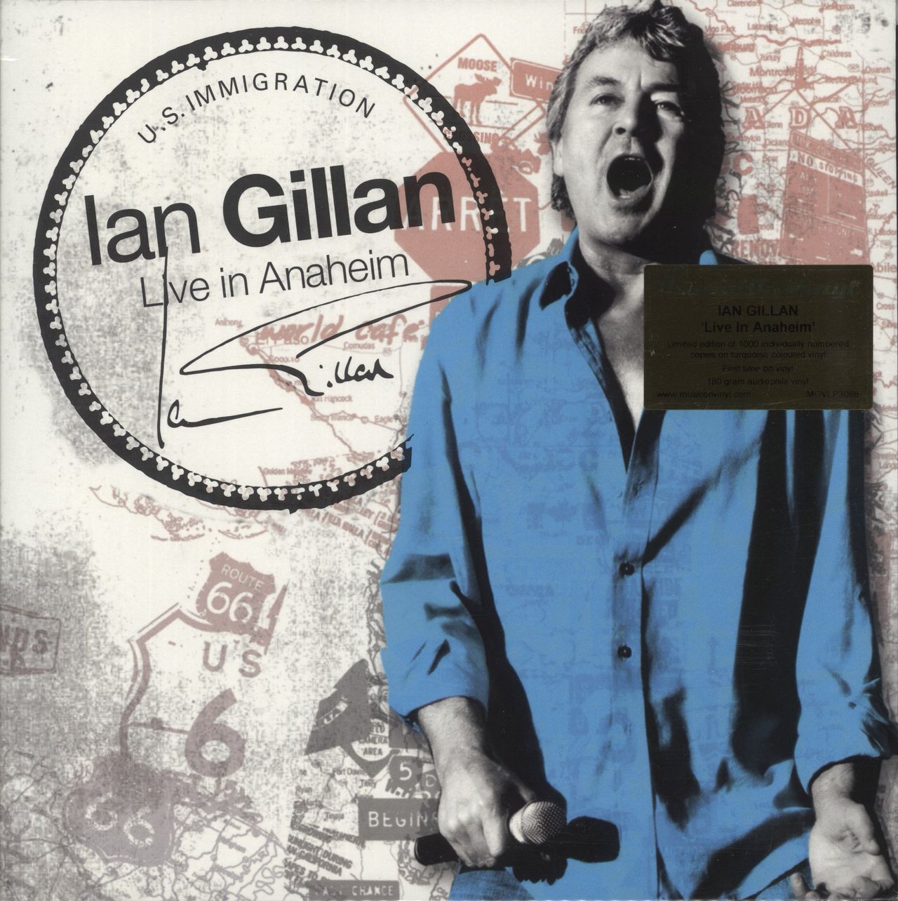 IAN GILLAN Live In Anaheim (2022 UK/EU limited edition 20 track Double Album 2-LP pressed on 180gram Turquoise Vinyl - first time on vinyl. Originally releasaed in 2008, recorded live at the famous House OfBlues Club in Anaheim, California at the end of 2006, and sees him present the best of his career as a solo artist [with material from most of his albums], rarities [like 'Have Love Will Travel' he recorded on hard to find solo album by guitarist Michael Lee Jackson] and lots of Deep Purple Songs including the mega classics 'Smoke on The Water' & 'Into The Fire' alongside tracks that Purple rarely played. Housed in an individially silver foil stamped numbered gatefold picture sleeve, still in the gold hype stickered re-sealable bag, and remains in a near mint condition)