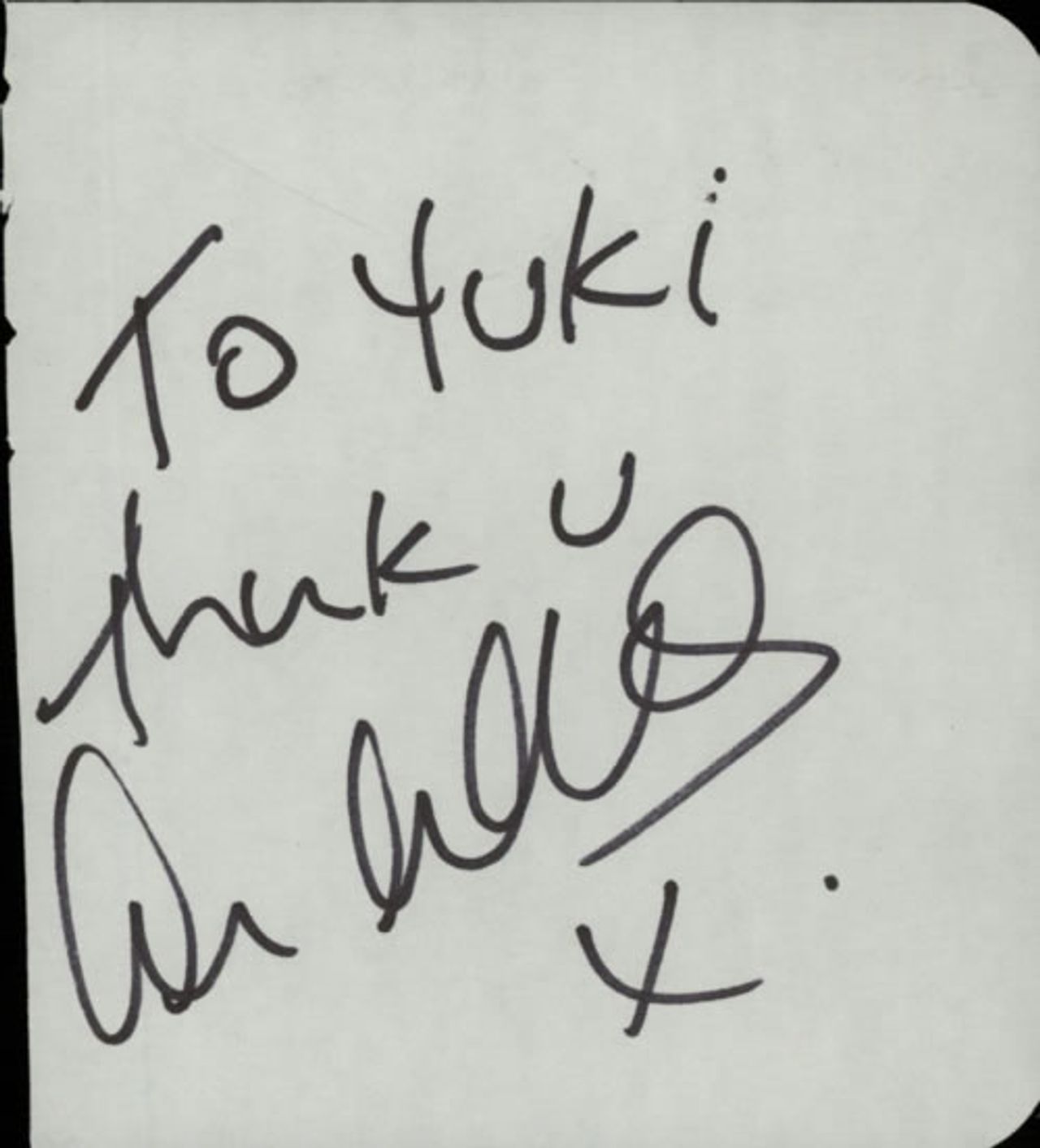 Signatures were obtained by Yuki Smythe-Park. For many years Yuki's husband Colin, was Eric Clapton's assistant tour manager, working on many of his 1980s concerts & tours. On August 26th 1990, Clapton played the Alpine Valley Music Theatre, Wisconsin, alongside Stevie Ray Vaughan & Double Trouble, Robert Cray and Buddy Guy. Following the show Colin Smythe, along with Clapton's agent Bobby Brooks, his bodyguard Nigel Browne and Stevie Ray Vaughan boarded a helicopter bound for Chicago. Tragically, the helicopter crashed shortly after take-off, killing all on board. Yuki was friends with many artists from that era and continued to attend gigs and fill her numerous autograph books. These signatures were obtained in person by Yuki.