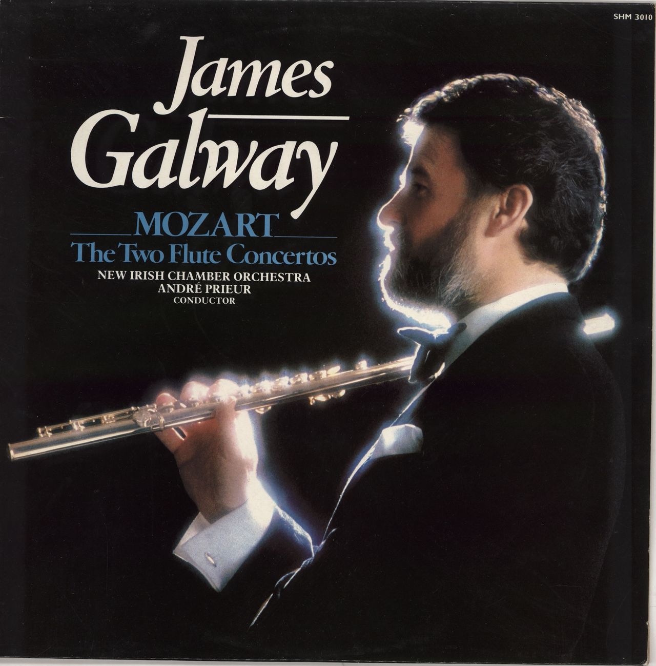 JAMES GALWAY Mozart: The Two Flute Concertos (1982 UK Stereo LP, featuring Concerto For Flute & Orchestra Nos. 1 & 2, recorded in the Aula Maxima, Maynooth College by New Irish Chamber Orchestra conducted by Andre Prieiur in 1973, front laminated picture sleeve. The sleeve shows just a little light shelfwear & the vinyl remains in Excellent condition with few signs of play SHM3010)