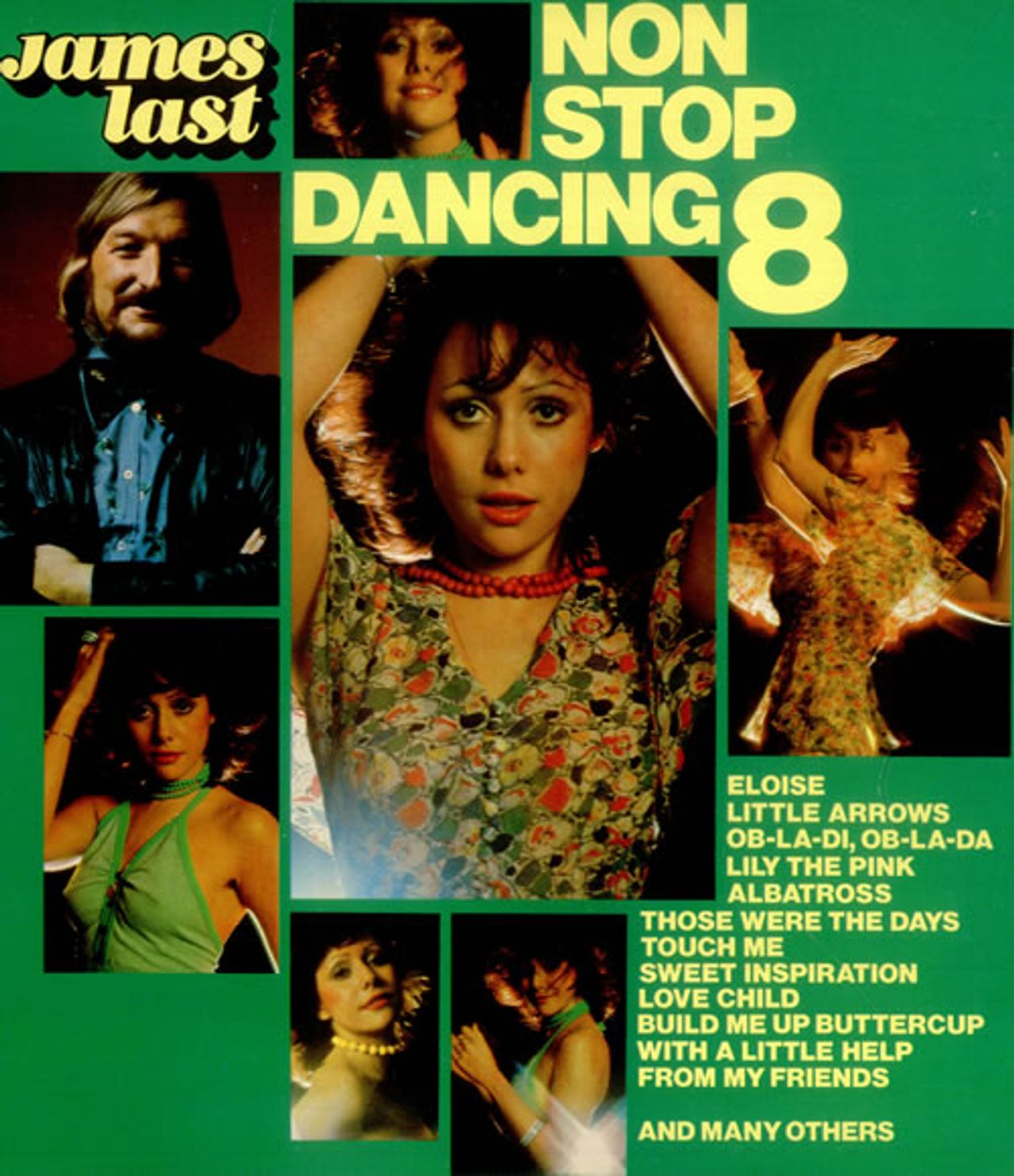 JAMES LAST Non Stop Dancing 8 (Mid 70s UK 10-track LP, housed in a fully laminated picture sleeve. The sleeve & vinyl appear Near Mint)