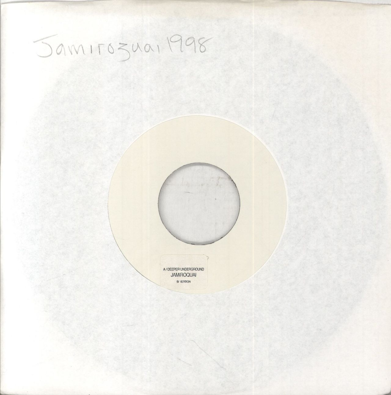 JAMIROQUAI Deeper Underground (1998 wide centre vinyl 7" for the single release, pressed exclusively for jukebox use and never commercially available in this format, with plain white labels with a custom sticker attached, plain die-cut paper sleeve)