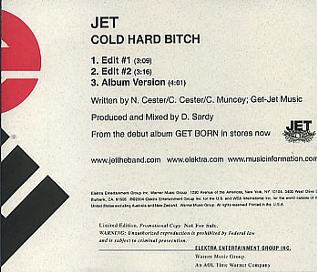 JET Cold Hard Bitch (2004 US 3-track promo-only CD, includes