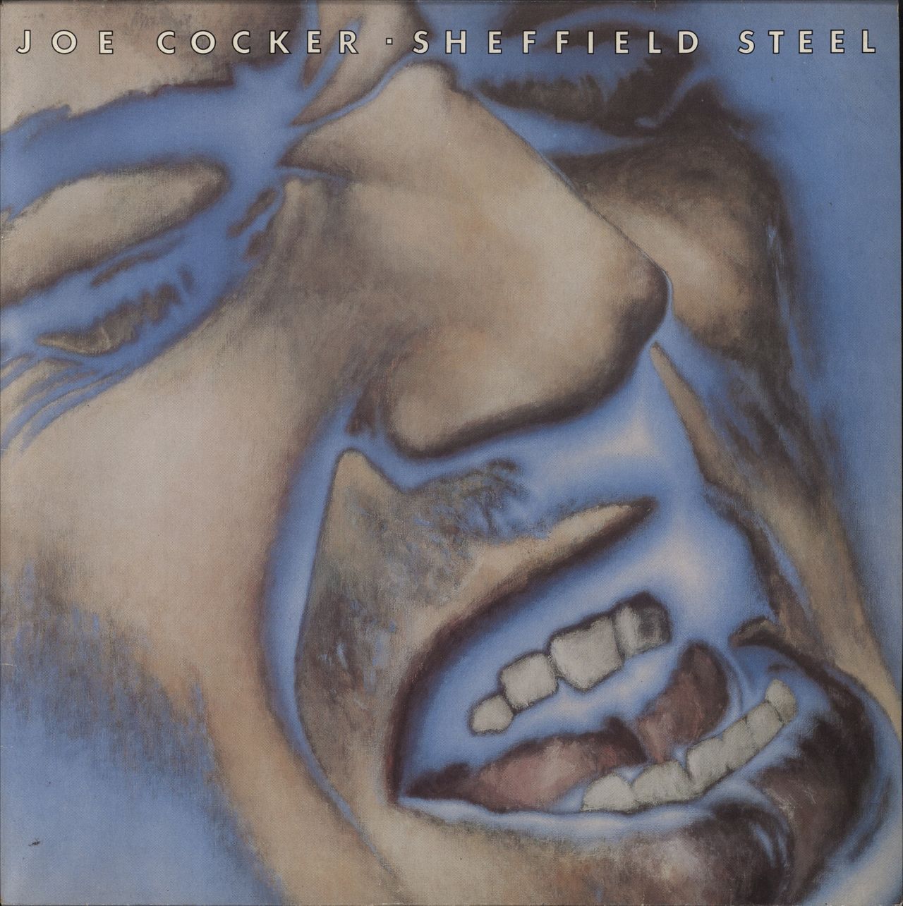 JOE COCKER Sheffield Steel (1982 UK 10-track vinyl LP, featuring Sly & Robbie as the rock solid rhythm section, including many versions of classics by Dylan, Winwood, Jimmy Cliff & Randy Newman, picture sleeve. The sleeve shows light edgewear with some creasing and discolouring to the spine. The vinyl shows some light cosmetic surface scuffs but nothing that should impact on play ILPS9700)