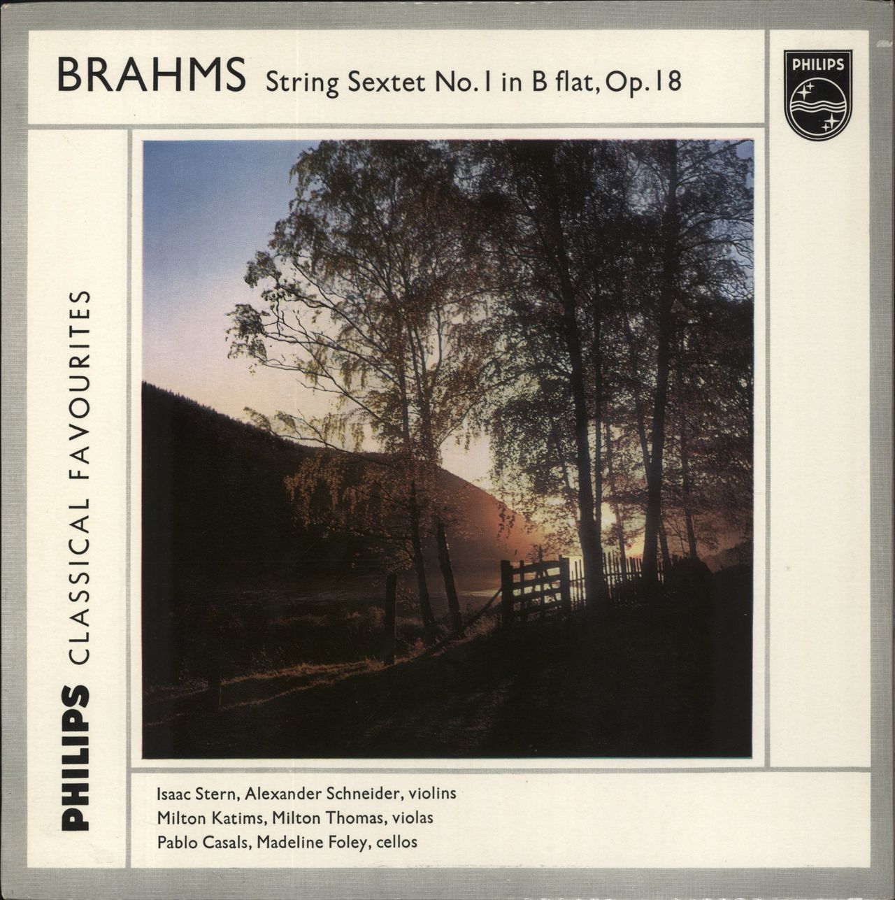 JOHANNES BRAHMS String Sextet No. 1 In B Flat, Op.18 (Early 1960s Philips red label 4-track LP, with Isaac Stern, Alexander Schneider (violins), Milton Katims, Milton Thomas (violas) and Pablo Casals, Madeline Foley (cellos) with extensive liner notes in English on the reverse. The sleeve shows minimal shelfwear & the vinyl remains near 'as new' with little sign of play! GBL5623)