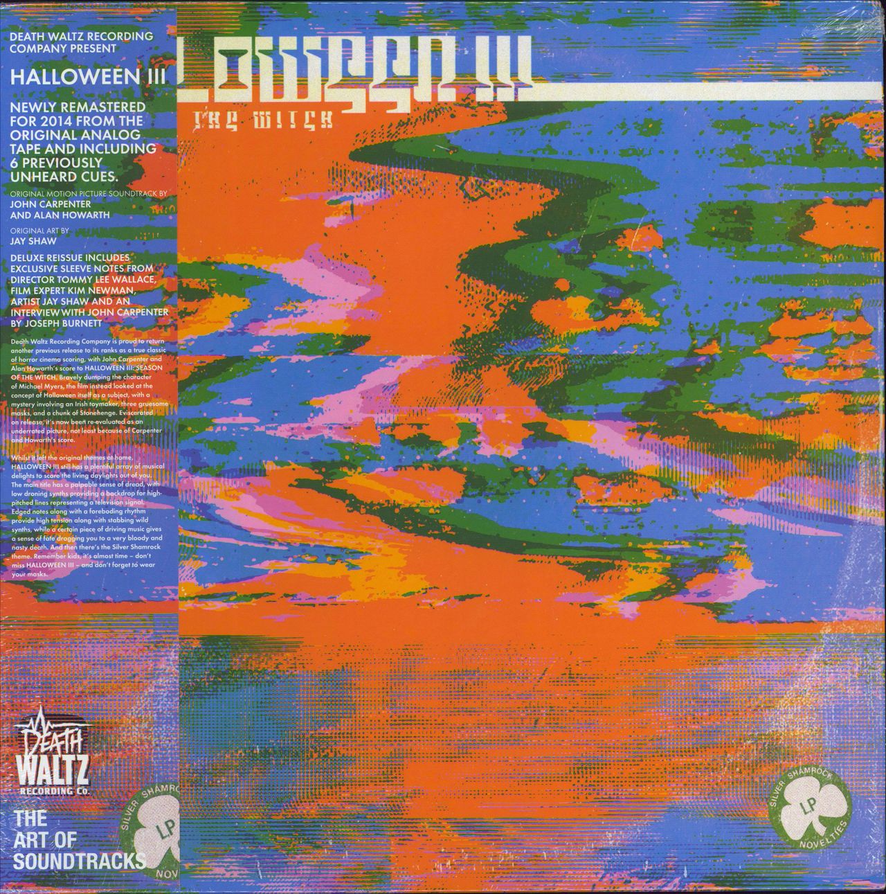 JOHN CARPENTER Halloween III - Season Of The Witch (Limited edition 2014 UK Death Waltz 12-track LP, pressed on Orange Vinyl, recorded by John Carpenter & Alan Howarth on then-state of the art 24 track 2" tape in real time, housed in a spot lacquered picture sleeve with exclusive artwork by Jay Shaw, complete with an insert containing notes by the artist, an A2 poster of the album's cover and the obi style card wrap-around strip. The sleeve shows only one or two creases. The vinyl is in Near Mint condition)