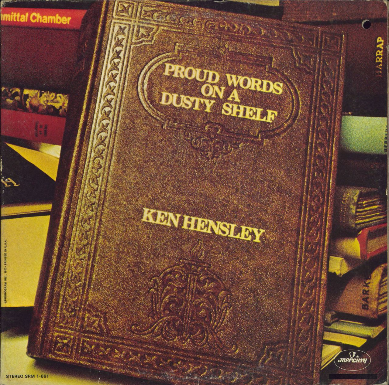 KEN HENSLEY Proud Words On A Dusty Shelf (1973 US 10-track vinyl LP, the Uriah Heep keyboardist's first solo album, written fully by Ken along with him playing nearly all of the instruments himself. Housed in a gatefold picture sleeve. The sleeve hasa deletion hole, a sticker removal paperloss spot & some general storage wear, however the vinyl has just a few minor surface scuffs - overall an Excellent copy SRM-1-661)