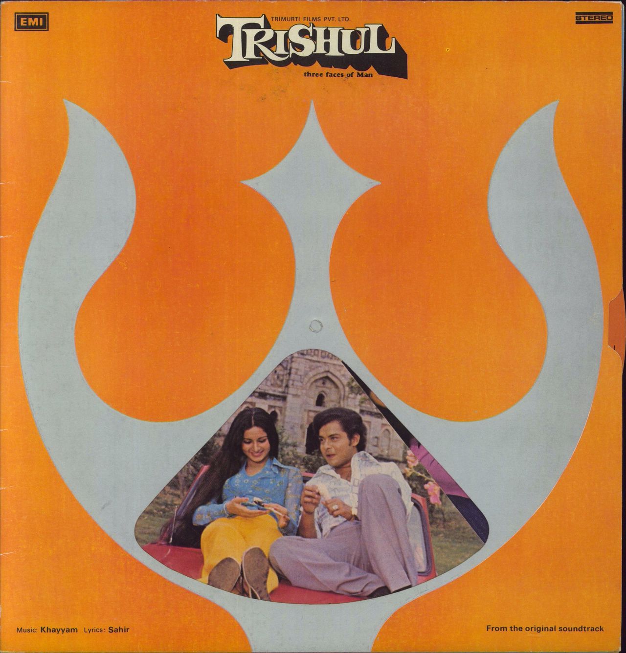 ORIGINAL SOUNDTRACK Trishul (Three Faces Of Man) (1977 Indian 7-track vinyl LP, Khaiyyaam's movie score featuring performances by Lata Mangeshkar & Kishore Kumar, embossed die-cut gatefold picture sleeve with rotating picture wheel. The sleeveshows minimal wear with the wheel working beautifully, whilst the vinyl appears barely played PEASD2009)