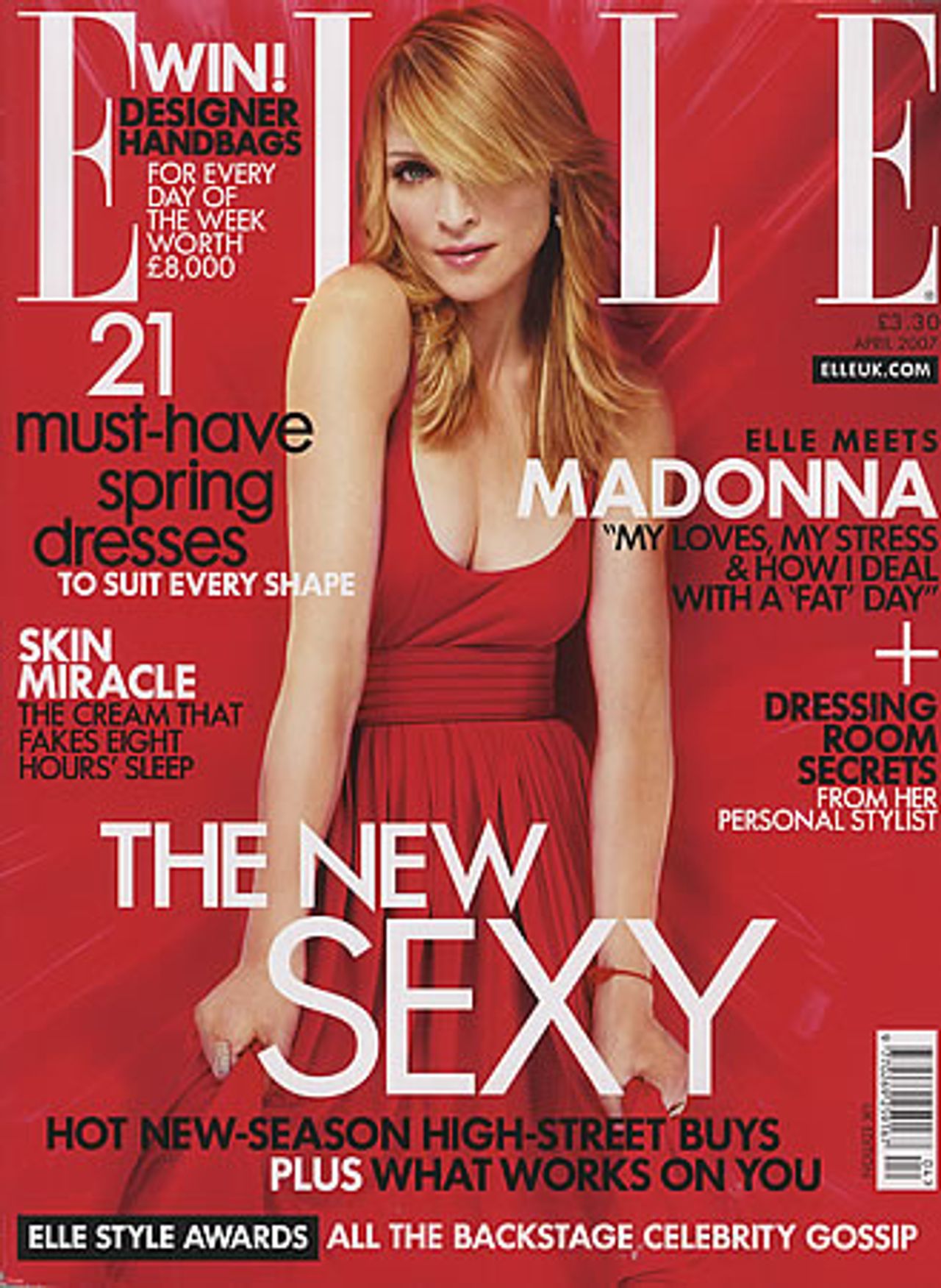 MADONNA Elle Magazine (April 2007 issue of the UK magazine 'Elle', featuring a 8-page article in which Madonna talks to Kerry Potter about fashion, family, fame and being a style icon, also includes several great fashion photos and Madonna frontcover shot!)