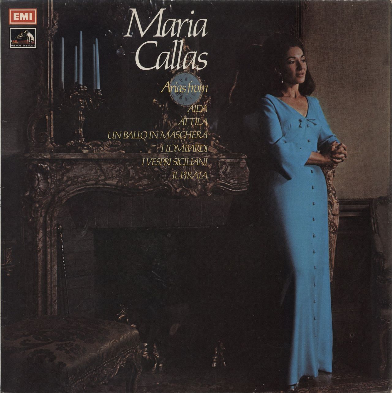 MARIA CALLAS Arias from Aida, Un Ballo in Maschere, I Vespri Siciliani, I Lombardi, Attila, Il Pirata (late 1970s UK HMV black/white stamp label stereo vinyl LP; this collection primarily includes works by Verdi, with Bellini's Il Pirata thrown in for good measure, front laminated flipback picture sleeve with libretto insert ASD2791)