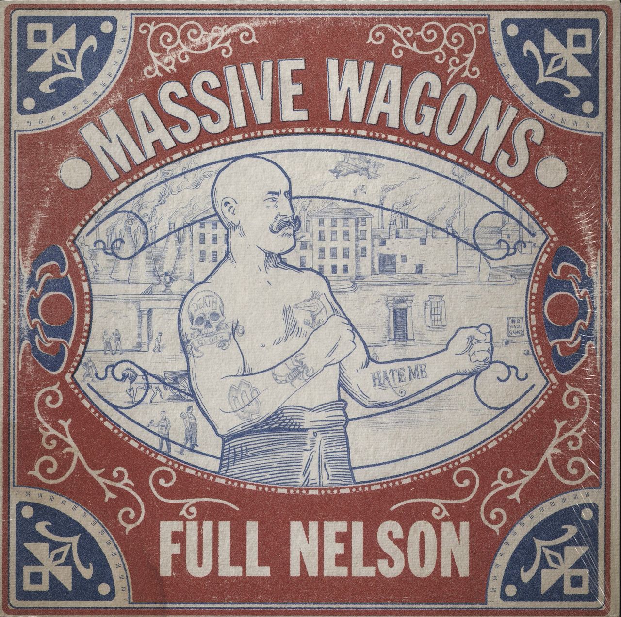 MASSIVE WAGONS Full Nelson (2018 UK/EU limited edition 12-track LP pressed on White Vinyl - This fourth studio album from the English anthemic rockers is also their debut on the Earache Records label and features a collection of quintessentially British hard rock 'n' roll tracks and a live energy that is impossible not to get swept up in, mainly thanks to singer Baz Mills' mesmerising, animated and infectious showmanship and the band's musical muscle; including the single 'Under No Illusion'. Picture sleeve which retains its opened shrinkwrap complete with the lyric printed inner and fully Autographed photo print. The inner shows some wear to the bottom seam but the sleeve and vinyl remain in Near Mint condition. Limited to only 200 copies)