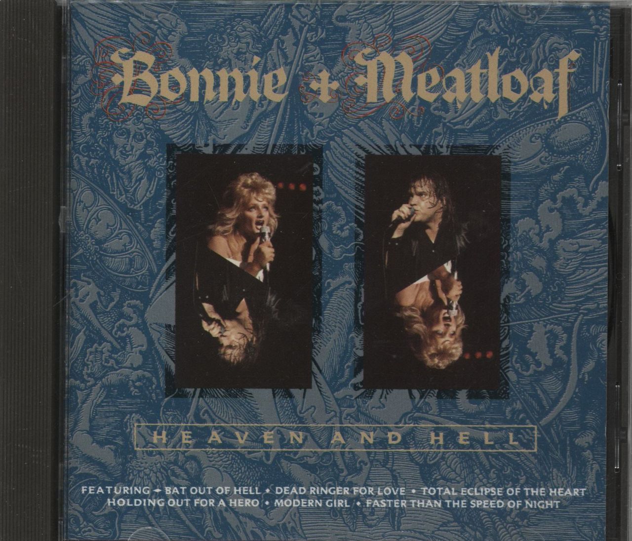 BONNIE & MEAT LOAF Heaven And Hell (1989 UK 14-track CD album featuring 7 tracks by Meat Loaf [including Dead Ringer For Love, Bat Out Of Hell and You Took The Words Right Out Of My Mouth] and 7 tracks by Bonnie Tyler [Total Eclipse Of The Heart, Holding Out For A Hero, Straight From The Heart and Have You Ever Seen The Rain], picture sleeve TCD2361)