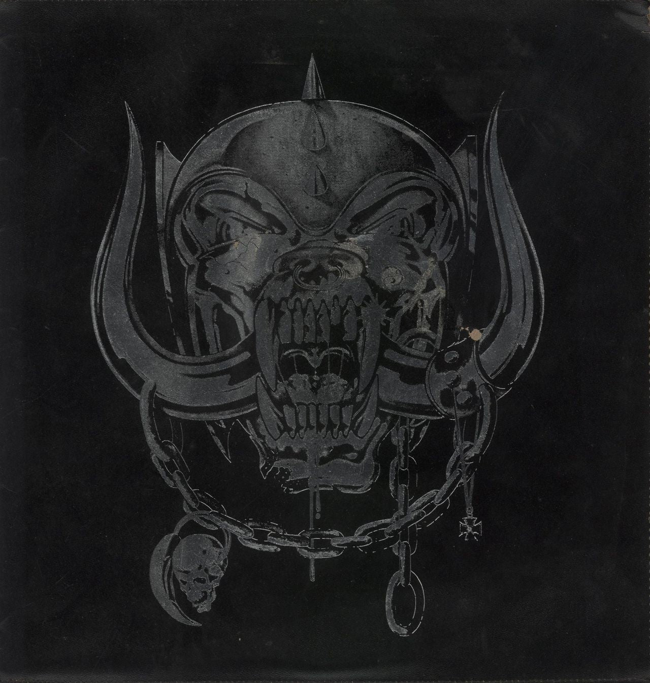 MOTORHEAD No Remorse (1984 UK limited edition 24-track double vinyl compilation LP which provides an overview of the band's time with Bronze Records and also includes four newly recorded tracks. Housed in a special embossed black leather sleeve with two inners printed with the lyrics, chart position [if any], individual remarks by Lemmy on each track and a biography written by Malcolm Dome of KERRANG! magazine. The leather sleeve has a small area of image loss and a little generalstorage wear. The inners have some creasing and light storage marks. The vinyl has a surface scuff across side 2 plus some light hairlines not affecting play. A very respectable copy. As it says on the back of the cover - Play Loud! MOTOR1)