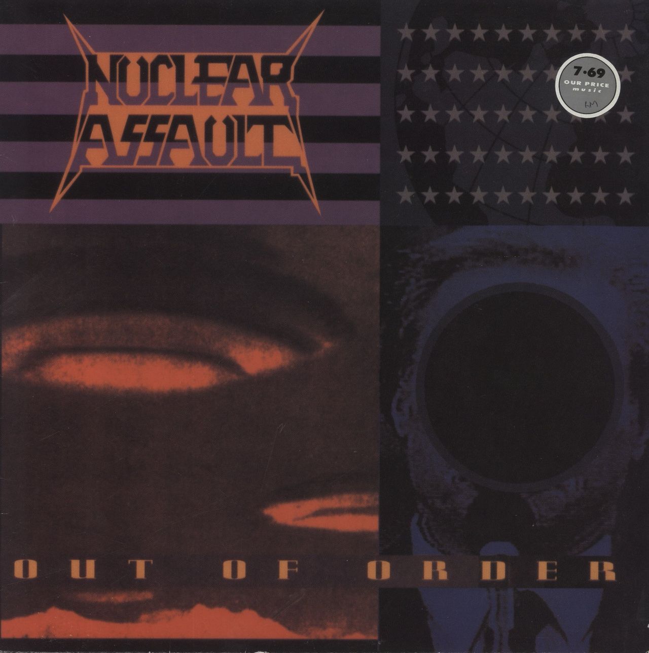 NUCLEAR ASSAULT Out Of Order (1991 UK 11-track vinyl LP, with picture sleeve. The fourth album from the seminal thrash metal band, and includes Sign in Blood, Too Young To Die, and a cover The Sweet's Ballroom Blitz; glossy picture sleeve withlyric printed inner. The sleeve retains a vintage price sticker and displays only light shelfwear and the vinyl shows only light signs of play, overall an Excellent example FLAG64)