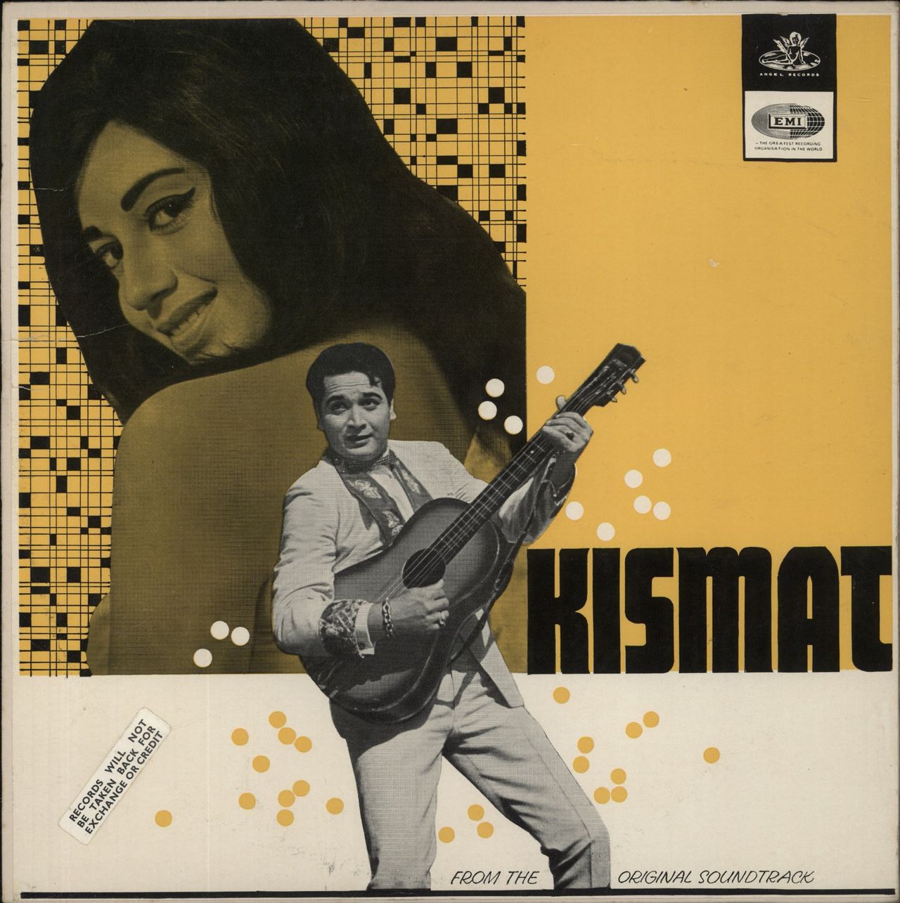 O. P. NAYYAR Kismat (Very rare 1968 Indian first issue 6-track vinyl LP on the maroon Angel record label, O.P. Nayyar's movie score featuring performances by Mahendra Kapoor, Asha Bhosle & Shamshad, pasted picture sleeve with original shop sticker to the front. The sleeve shows a little creasing leaving it Excellent, whilst the vinyl has a light cosmetic sheen and little sign of play leaving it Excellent 3AEX5193)