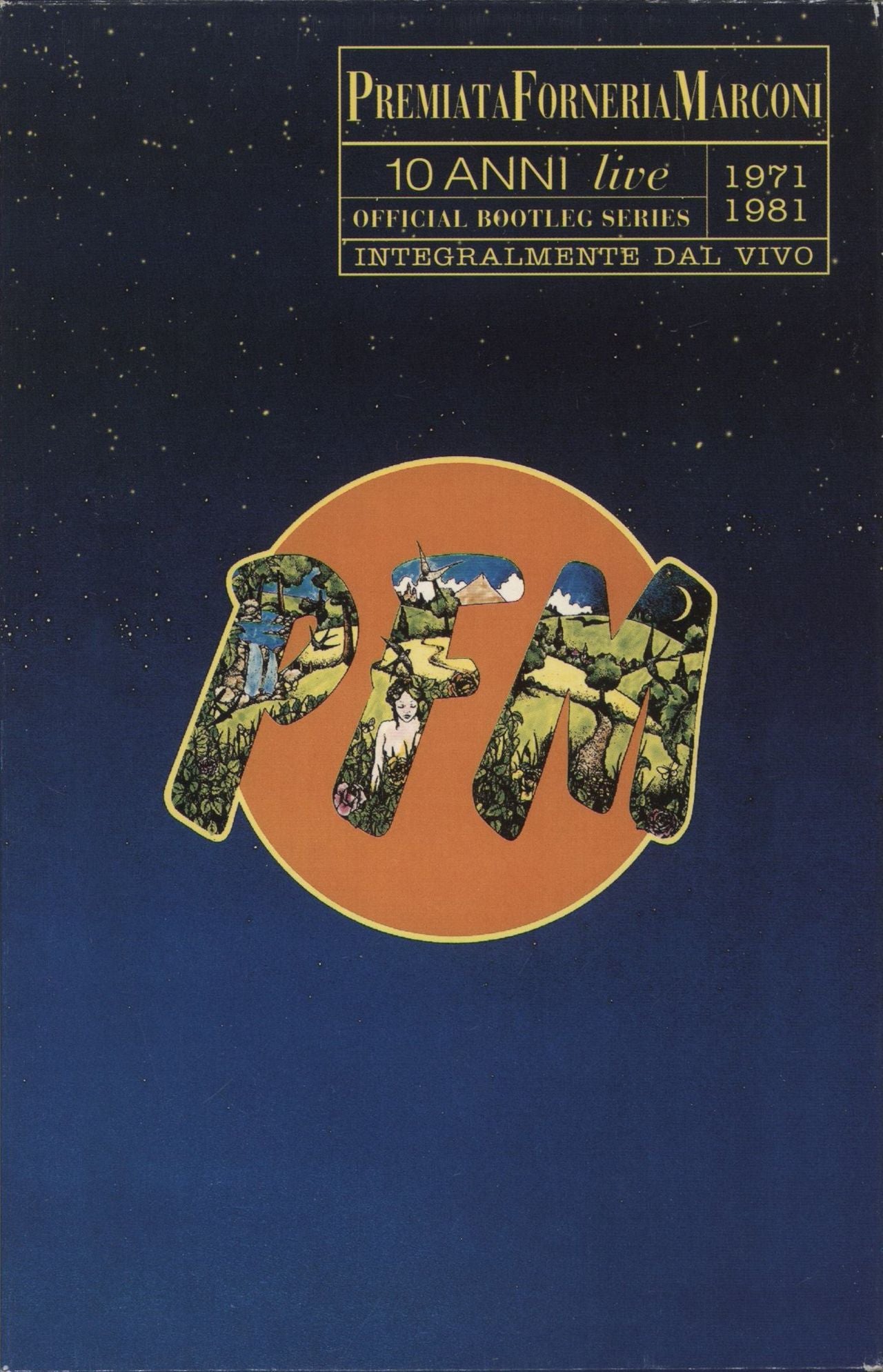 PREMIATA FORNERIA MARCONI 10 Anni Live 1971-1981 (Limited Edition 1996 Italian 50-track FOUR CD Box Set, the ultimate PFM live document for the completist, housed in a special layered flip-tray digibook with an exclusive 45-page booklet in Italian complete with a glossy slipcase. The packaging is Excellent with minor shelf wear & the discs are Near Mint RTI0217-2)