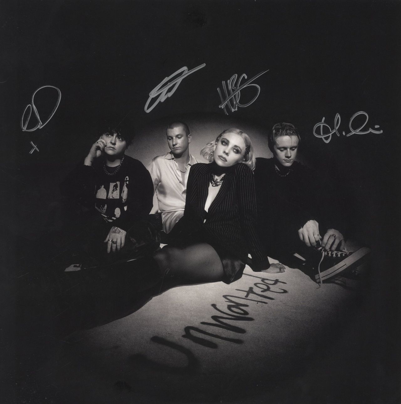 PALE WAVES Unwanted (Fully Autographed 2022 UK Limited Edition 13-track LP pressed on Heavyweight Neon Pink Vinyl , exclusive to Indies & High Street Retailers. This collector's copy has been signed in silver marker pen on the front cover by the full group - Heather Baron-Gracie, Ciara Doran, Hugo Silvani & Charlie Wood - above each group member's respective image. Complete with the illustrated lyric inner, the picture sleeve showsminimal wear & the vinyl is Near Mint. Also includes a bonus CD of the album in its card wallet picture sleeve with the booklet & inner - the front of the CD wallet sleeve has also been fully autographed by the group in silver pen! DH01399)
