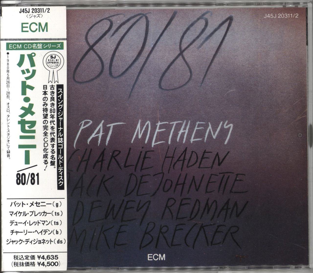 PAT METHENY, CHARLIE HADEN, JACK DEJOHNETTE, DEWEY REDMAN & MIKE BRECKER 80/81 (1989 Japanese 8-track 2-CD on ECM Records, also starring Charlie Haden on bass, Jack De Johnette on drums with Dewey Redman & Mike Brecker on saxes. Housed in a fat double album jewel case complete with the illustrated credits booklet & obi-strip)