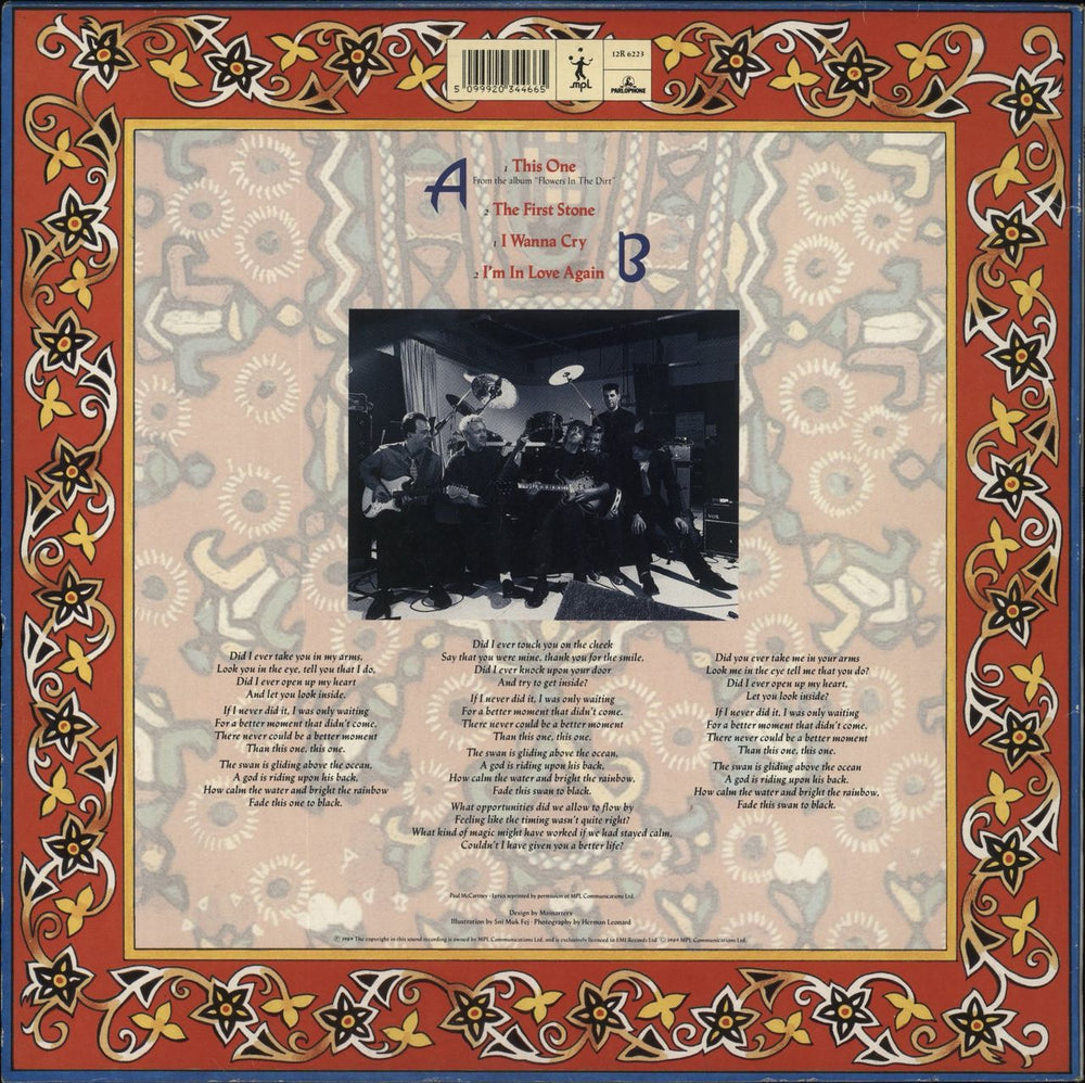 PAUL McCARTNEY This One (1989 UK 4-track 12" vinyl EP, also featuring The First Stone, I Wanna Cry & I'm In Love Again, picture sleeve with lyrics on reverse. The sleeve shows a little tear to top edge with creasing to the opening edge whilstthe vinyl shows only light signs of play 12R6223)