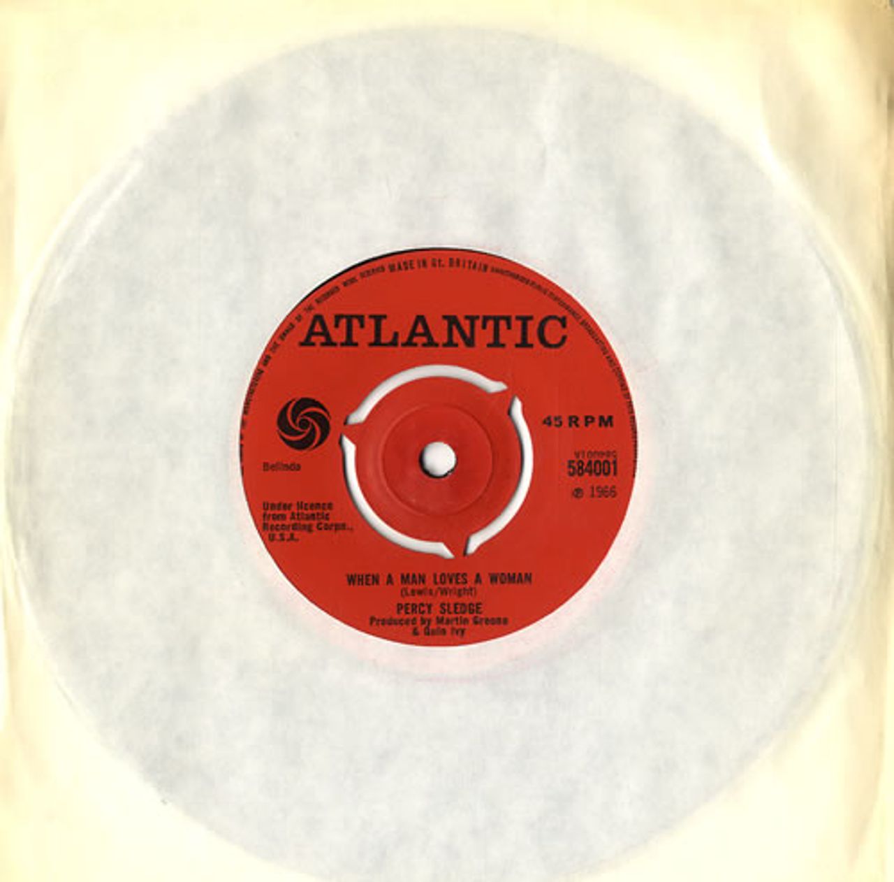 PERCY SLEDGE When A Man Loves A Woman (Classic 1966 UK 7" vinyl single with intact three prong centre, also featuring Love Me Like You Mean It, plain company die cut paper sleeve)