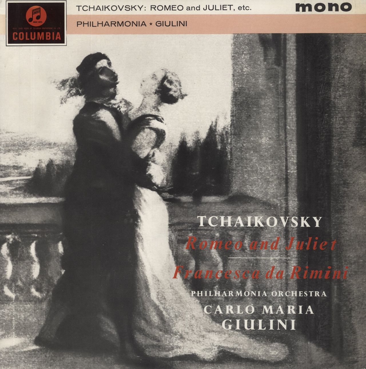 CARLO MARIA GIULINI conducts the PHILHARMONIA ORCHESTRA Tchaikovsky: Romeo And Juliet - Francesca Da Rimini (1963 UK 2-part mono vinyl LP on the gold & blue Columbia label, front laminated flipback picture sleeve. The sleeve shows light wear and the vinyl has minimal sign of play 33CX1840)