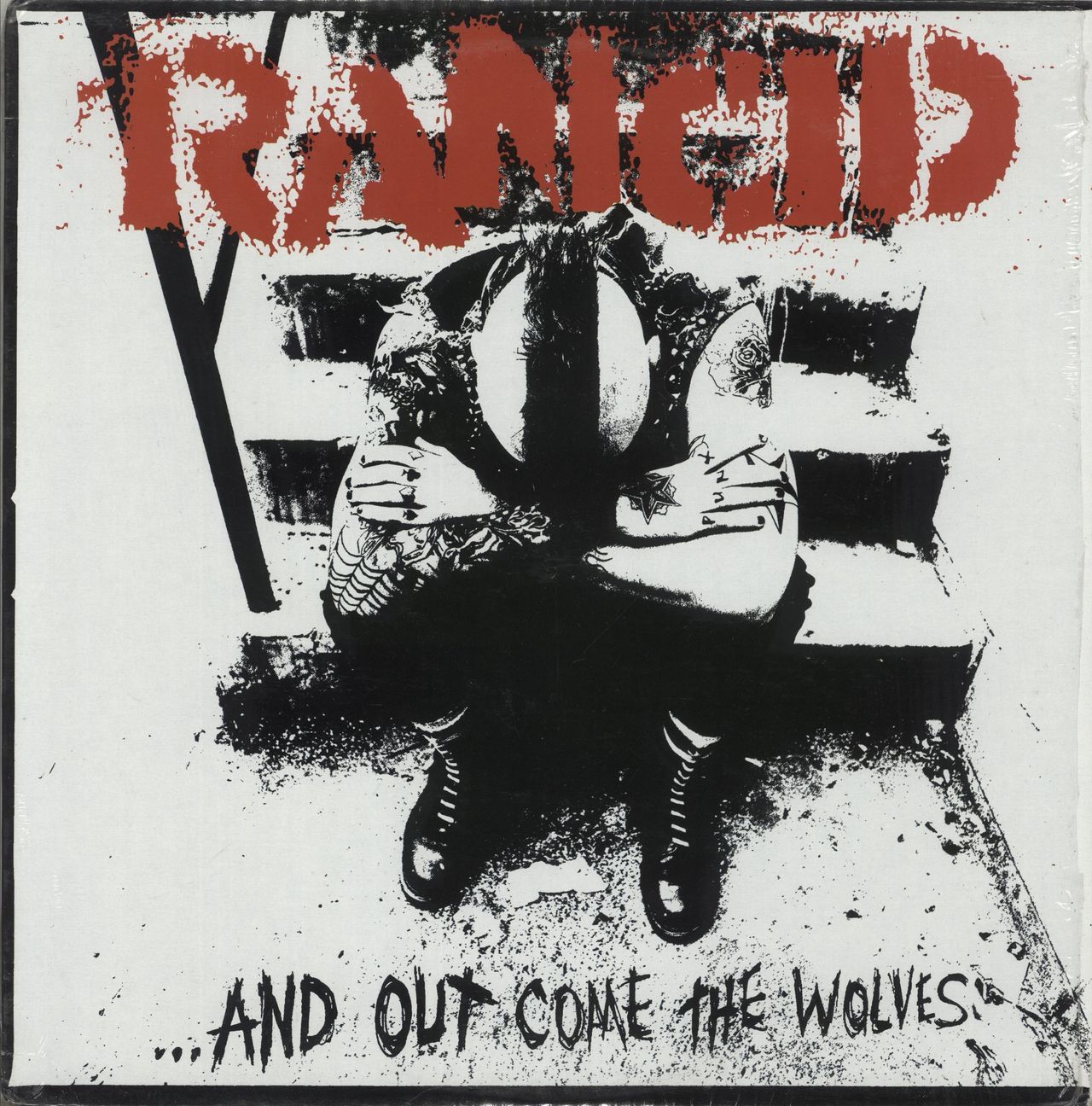 RANCID And Out Come The Wolves (1995 US 19-track LP on regular black vinyl, the band's best album, including the ska-punk classic 'Time Bomb', picture sleeve with lyric insert. The sleeve retains its open factory shrink & shows just minimal wear and the vinyl looks barely played)