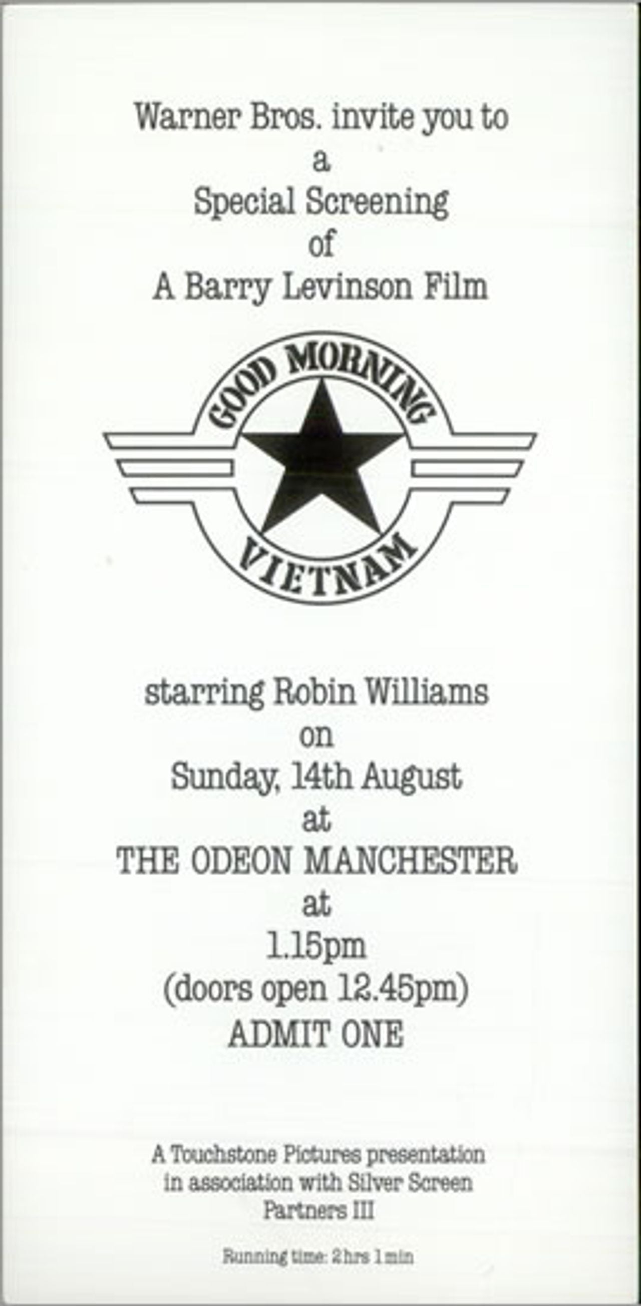 ROBIN WILLIAMS Good Morning Vietnam (1987 UK invitation to a