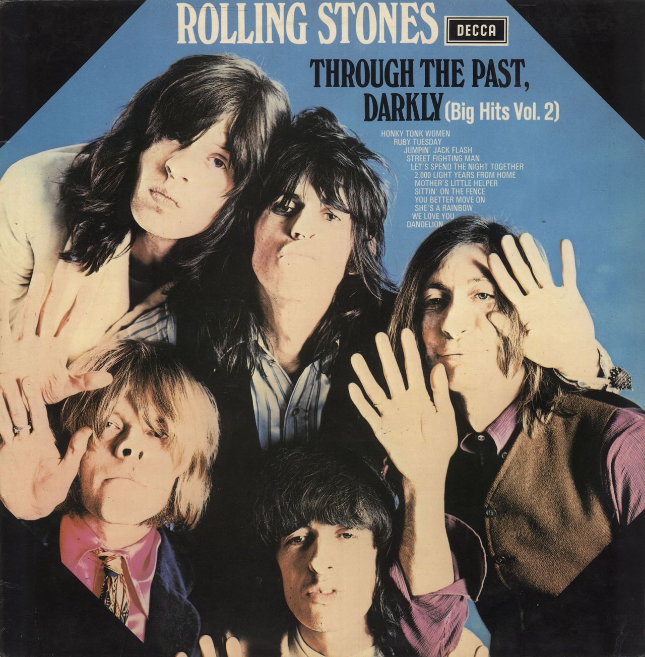 ROLLING STONES Through The Past Darkly (Early 70s [circa 1970-72] UK issue of the 1969 12-track stereo vinyl LP on the Decca 'boxed' label with 'Through The Past Darkly' and 'Big Hits Vol.2' on separate lines and side number to the left of thespindlehole. The front-laminated picture sleeve displays the die-cut mono / stereo indicator on the back and has only general age and shelf wear evident with the vinyl showing light spindlewear to indicate play SKL5019)