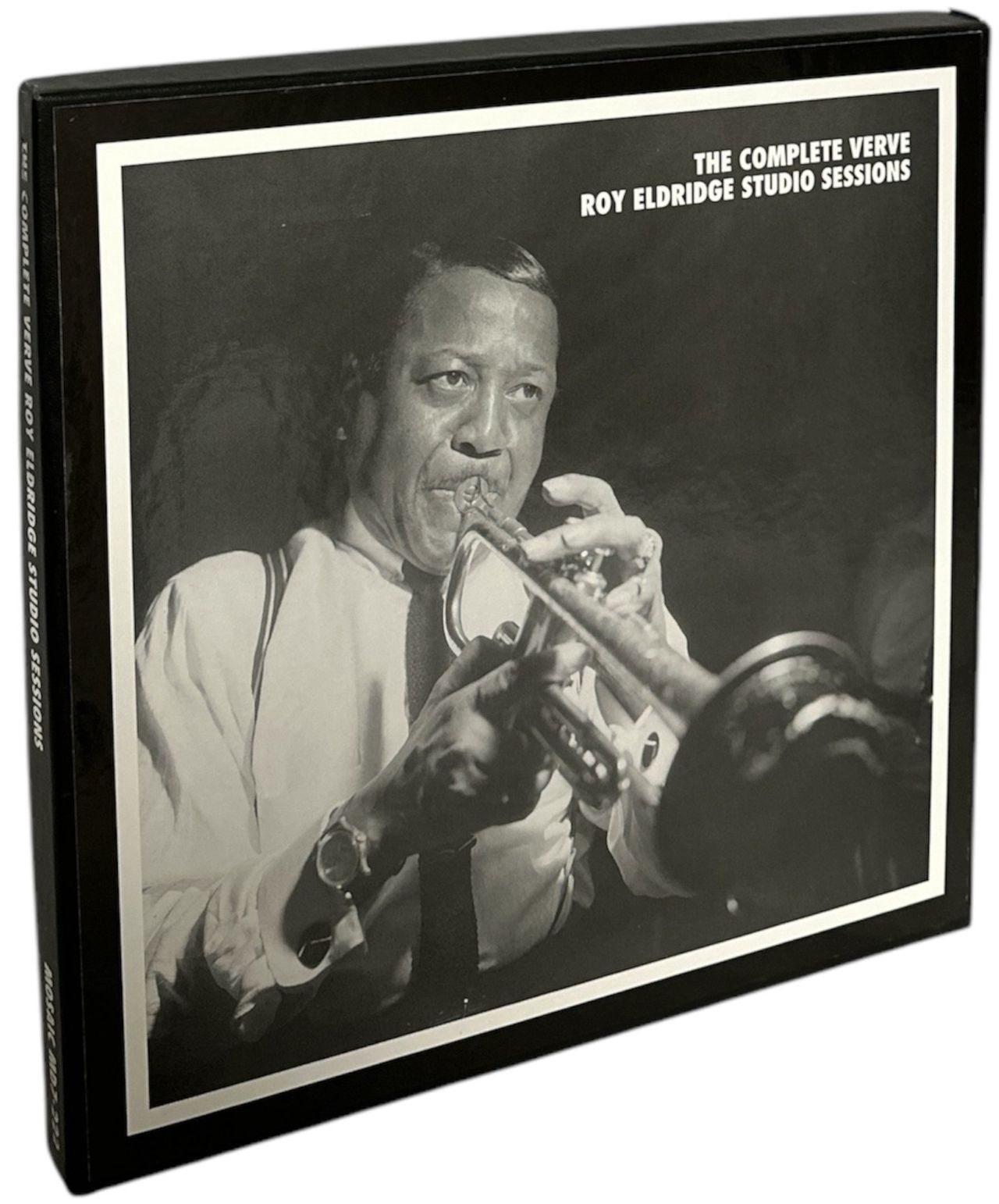 ROY ELDRIDGE The Complete Verve Roy Eldridge Studio Sessions (2003 USA 102-track 7 CD set, each housed in its own jewel case with picture sleeve, and sleeve notes about the recordings, presented in a lid-opening 12" thick card boxset with silver embossed text to spine with 16-page booklet with photographs, session date information and more. Chronicles the complete sessions for Verve recorded by Roy Eldridge across 7 CD's. Both the box and contents are still in a lovely Near Mint condition MD7-222)