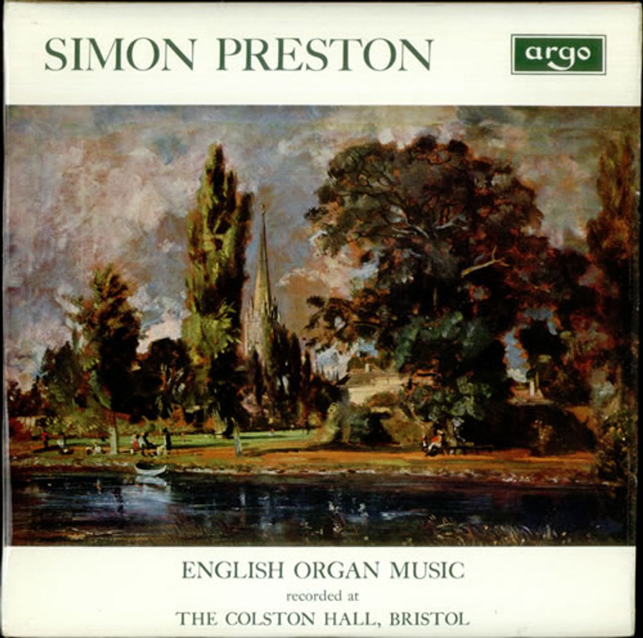 SIMON PRESTON English Organ Music (1967 UK Argo label stereo vinyl LP, performed at the Organ of the Colston Hall, Bristol, including works by Elgar, Leighton, Breidge, Howells, Tippett and Britten, front laminated picture sleeve with extensive liner notes RG528)