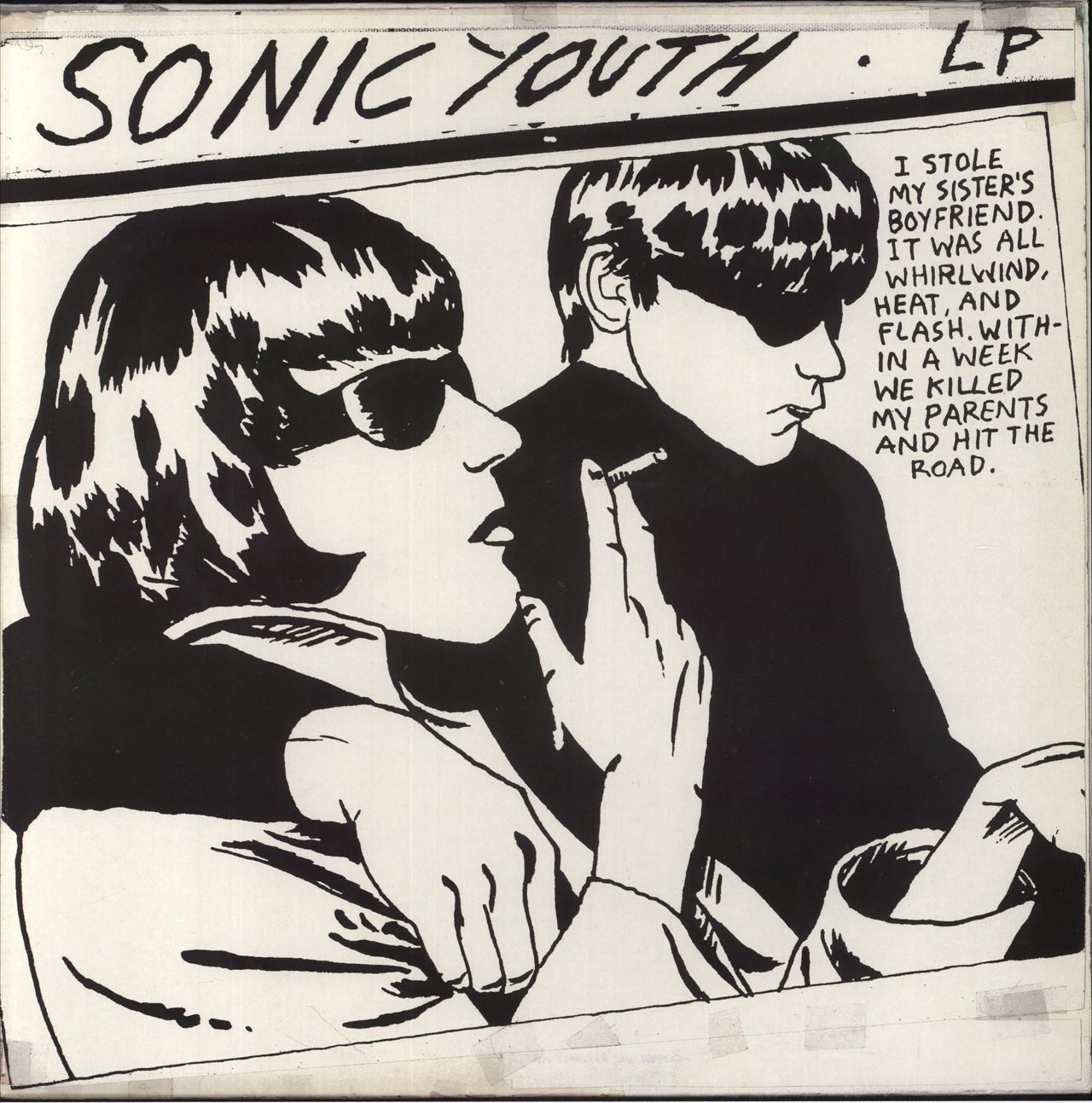 SONIC YOUTH Goo (Classic 1990 German first press 11-track vinyl LP, complete with the illustrated credits inner. This was a big mainstream breakthrough for the group, including Dirty Boots, Tunic [Song For Karen] & Kool Thing guest starring Chuck D. The glossy picture sleeve and inner has some edgewear from storage & the vinyl displays only light signs of play)