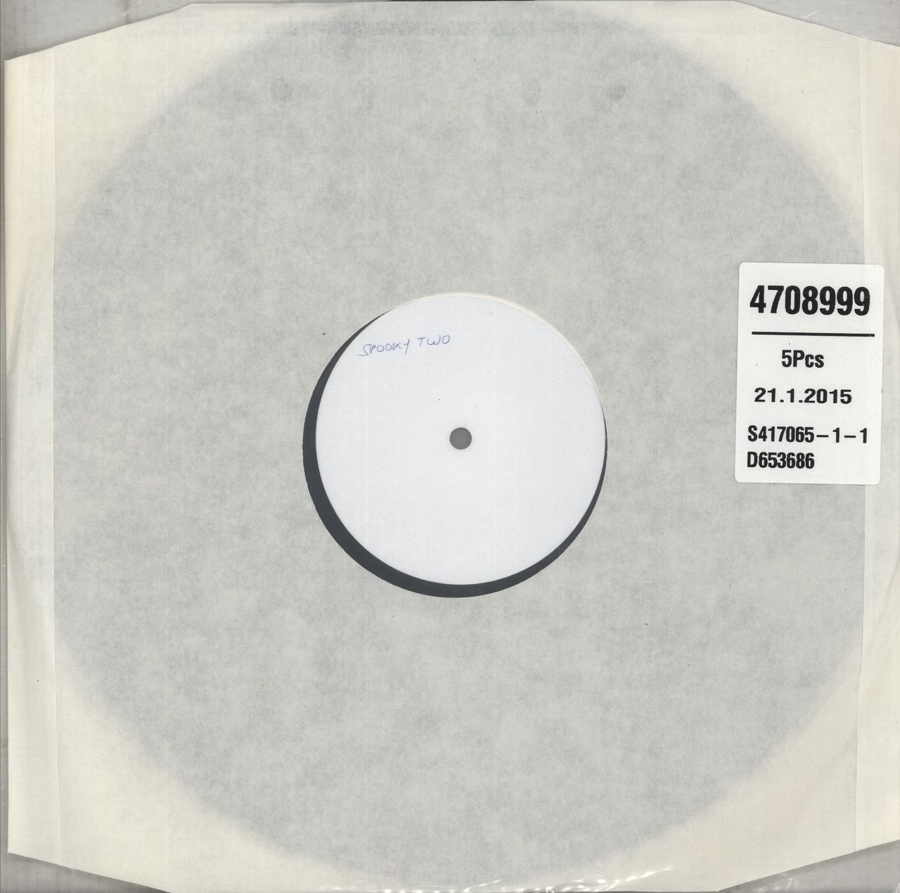 SPOOKY TOOTH Spooky Two (2015 UK/EU 8-track white label vinyl LP test pressing, for the limited edition reissue of the of the group's second studio album released in 1969. These would have been pressed to check the quality & the sonics ofthe pressing before the finished product was manufactured. Plain white labels with the album title hand written, housed in a plain die-cut sleeve in a plastic sleeve with catalogue number & date sticker attached, dated 21.01.2015)