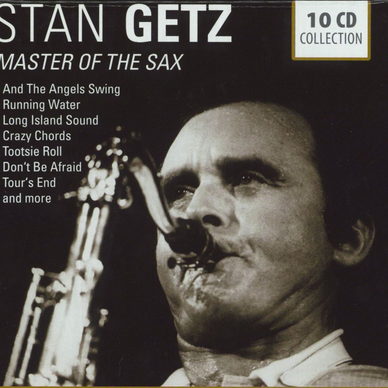 STAN GETZ Master Of The Sax (2011 UK 10-CD box set, includes the albums Interlude In Be Bop, Crazy Chords, For Stompers Only, Don't Be Afraid, Cool Mix, Nobody Else But Me, I'll Remember April, Indiana, I Want To Be Happy and Tour's End, eachCD is in its own card wallet presented in a picture box)