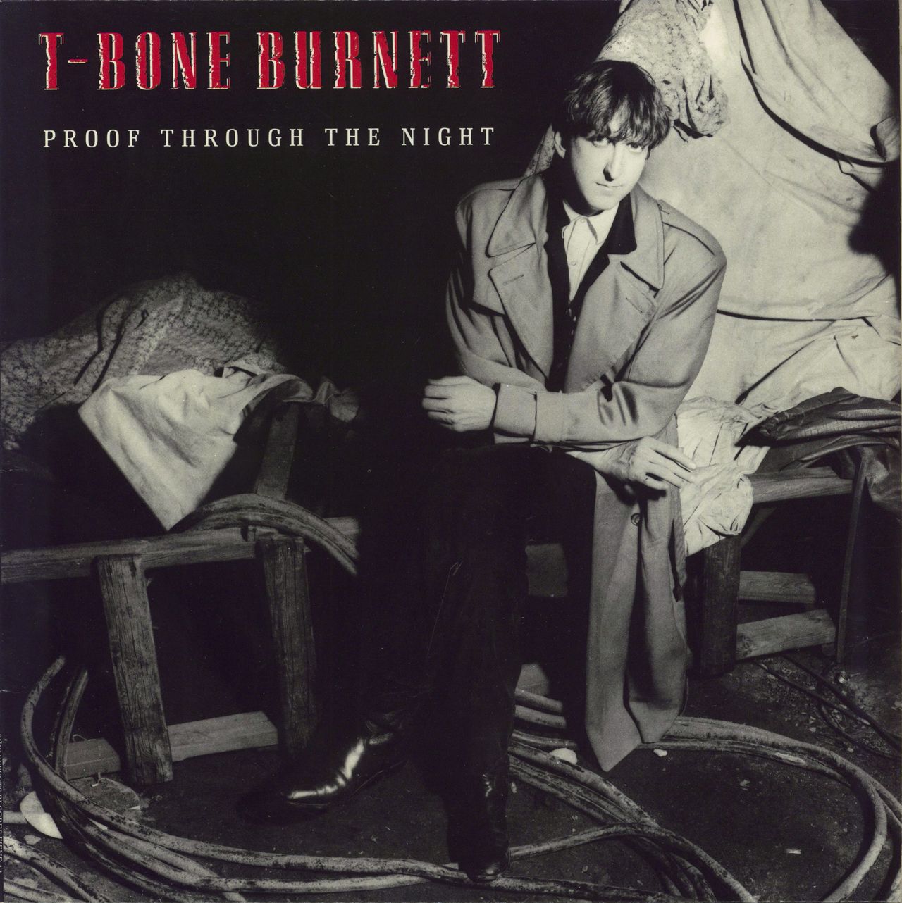 T-BONE BURNETT Proof Through The Night (1983 UK 11-track vinyl LP with guest appearances from musicians such as Mick Ronson, Pete Townshend, Richard Thompson, Ry Cooder & more. Housed in a glossy picture sleeve with lyric inner and fold-out advertisement insert. The sleeve shows some light edgewear, whilst the vinyl looks barely played FIEND14)