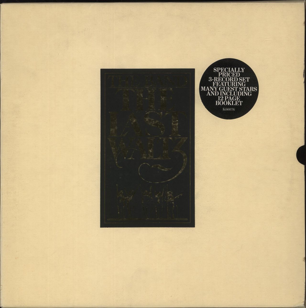 THE BAND The Last Waltz (80s UK 30-track triple vinyl LP on the cream Warner Bros label, featuring recordings from the legendary concert which was held on American Thanksgiving Day [25th November 1976] at Winterland Ballroom in San Francisco and saw them joined by special guests including Eric Clapton, Ringo Starr, Bob Dylan, Ronnie Wood, Muddy Waters, Neil Young, Neil Diamond, Van Morrison, Emmylou Harris, Joni Mitchell and more. Housed in individual yellow inners and wide-spinedgold embossed picture outer sleeve with hype sticker and 12-page illustrated booklet. The cover has some light storage wear and foxing, whilst the vinyl displays only light signs of play K66076)