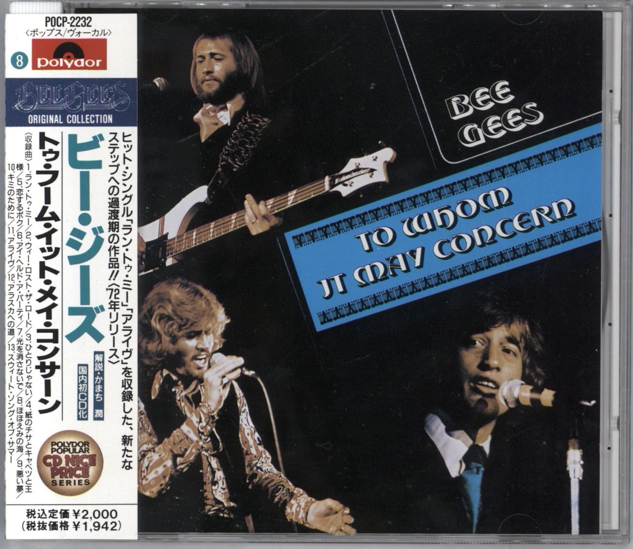 THE BEE GEES To Whom It May Concern (1992 Japanese issue 13-track CD album, originally released in 1972, housed in a standard jewel case with picture sleeve, fold-out lyric insert and 'Bee Gees Original Collection' obi-strip POCP-2232)