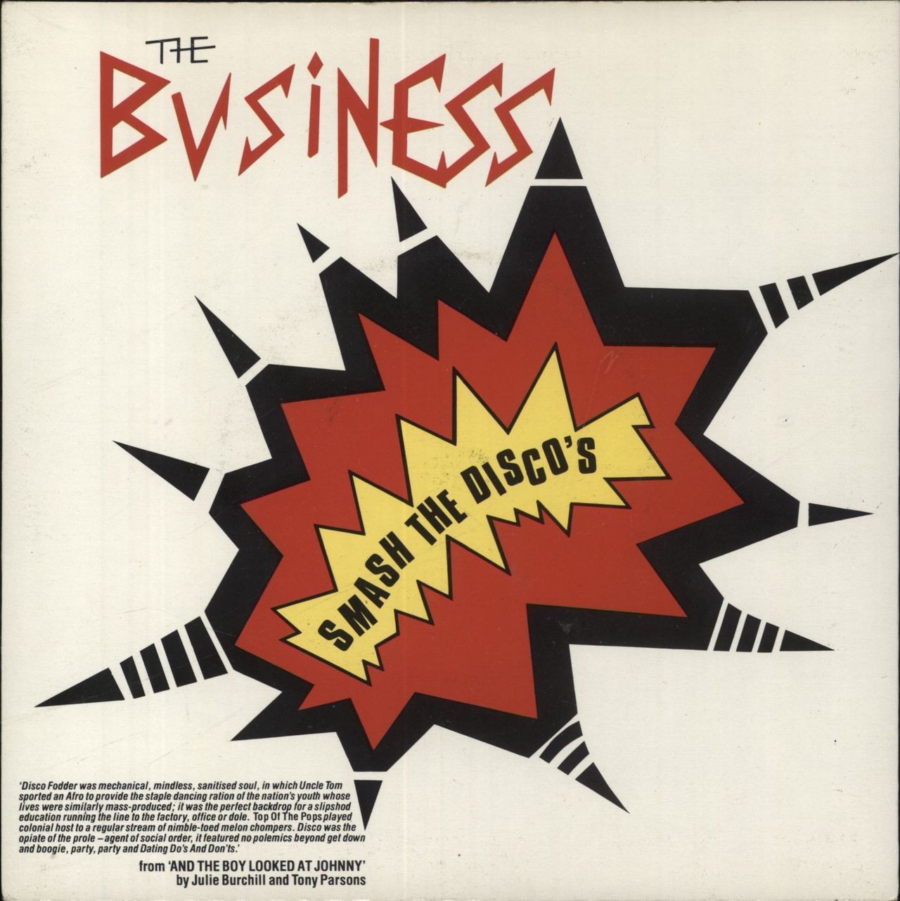 THE BUSINESS Smash The Discos EP (1982 UK 3-track 7" vinyl EP featuring Day O - Banana Boat Song [Non Disco Version], Disco Girls & Smash The Disco, picture sleeve SHH132)
