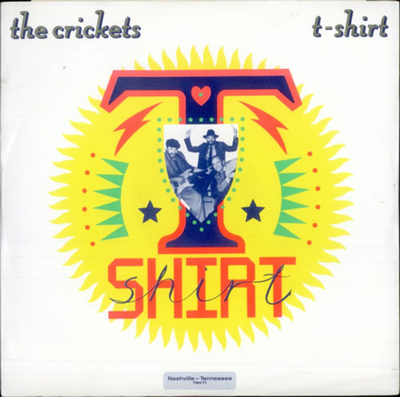 THE CRICKETS T-Shirt (1986 UK 3-track 12" vinyl single, produced by Sir Paul McCartney, also featuring Forever In Mind & Holly Would, vibrant picture sleeve TSHT1)