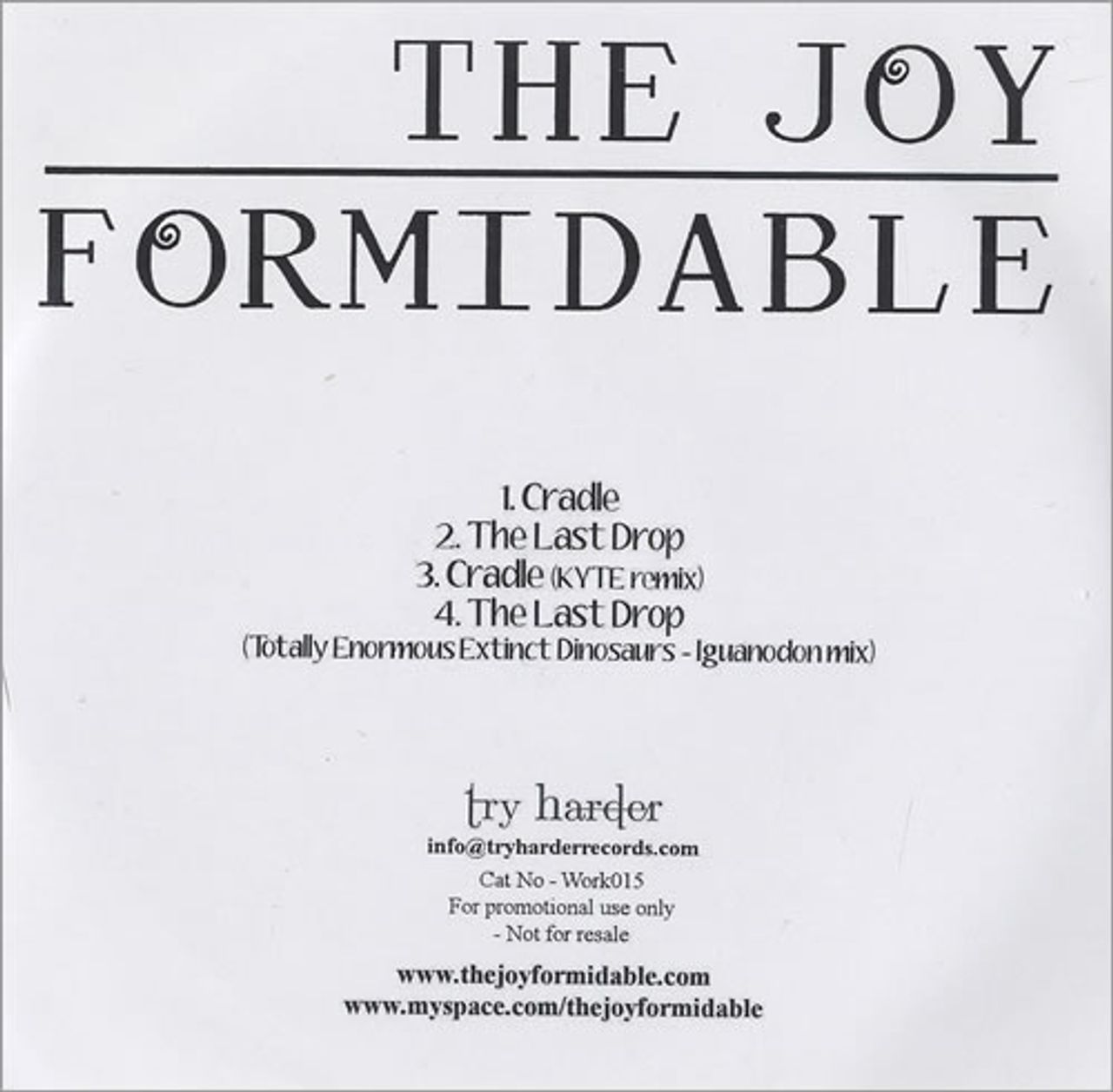 THE JOY FORMIDABLE Cradle (Official 2009 UK Try Harder
